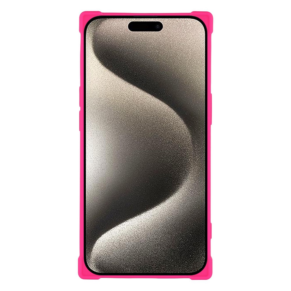 • For iPhone 15 Case Compatible with MagSafe Straight Edge TPU Phone Cover with Camera Lens Protector - Pink