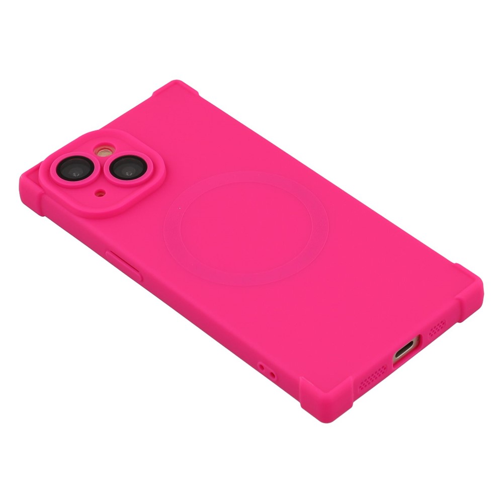 For iPhone 15 Case Compatible with MagSafe Straight Edge TPU Phone Cover with Camera Lens Protector - Rose