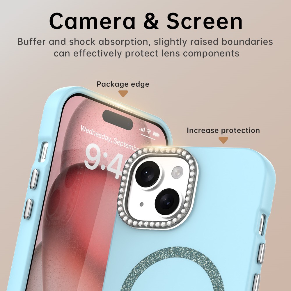 - Rhinestone Lens Frame The lens frame is adorned with sparkling rhinestones, adding a luxurious and eye-catching touch to your phone while protecting the camera