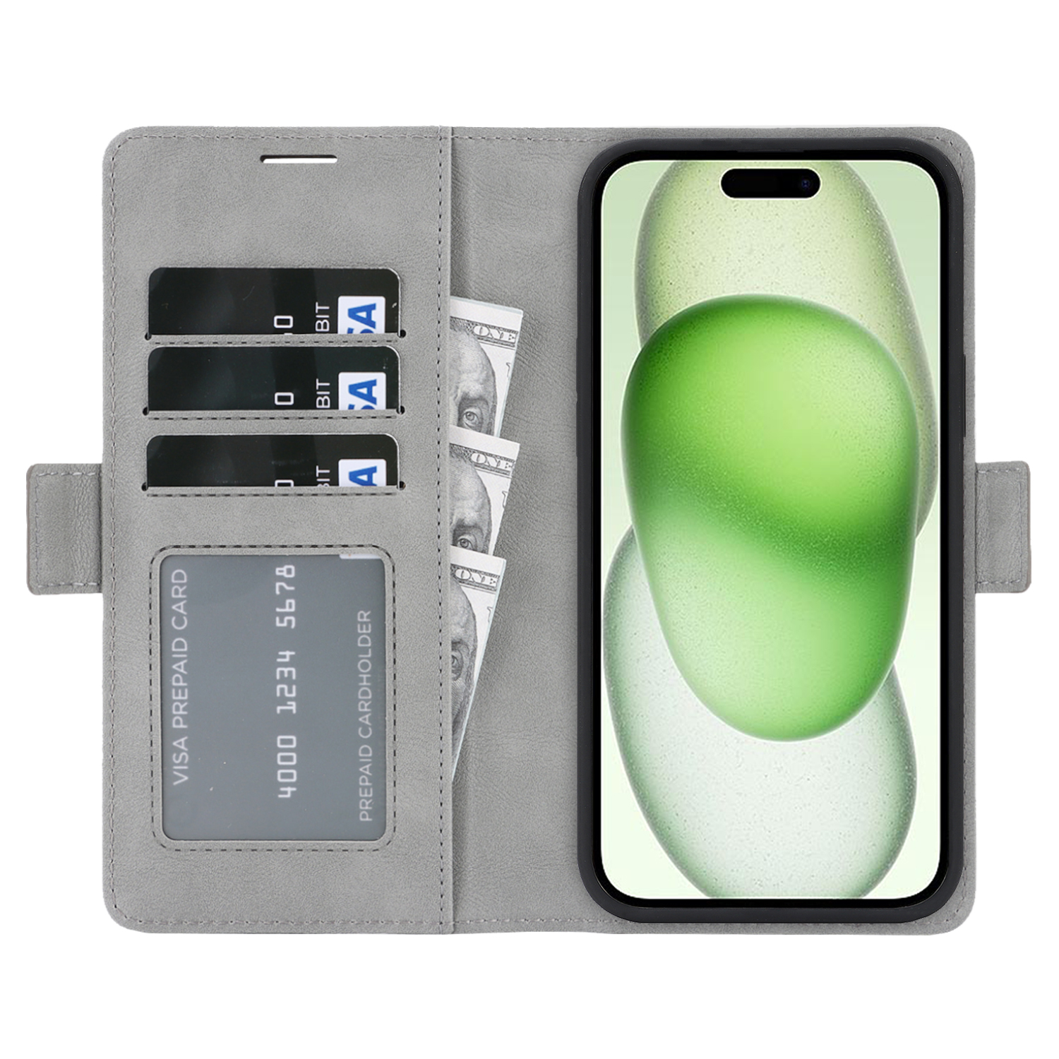For iPhone 15 Case Detachable 2 in 1 Leather Wallet Phone Cover Compatible with MagSafe – Grey