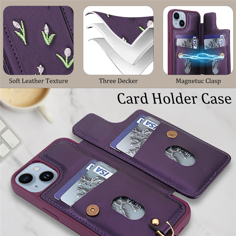 - Multifunctional Card Holder The back flap opens to reveal multiple card slots, secured with magnetic clasps, allowing you to carry your ID and credit cards securely