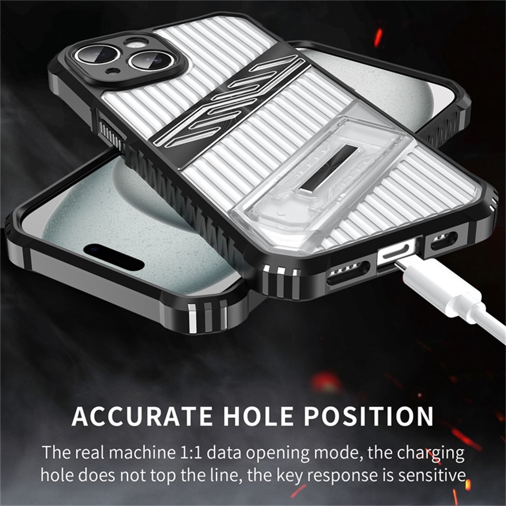 • For iPhone 15 Case Folding Kickstand PC + TPU Anti Drop Phone Cover - Transparent Black