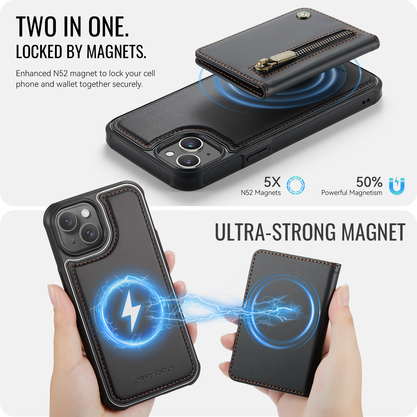 - Detachable Magnetic Design The card wallet and phone case can be magnetically attached or detached, and can be used separately.