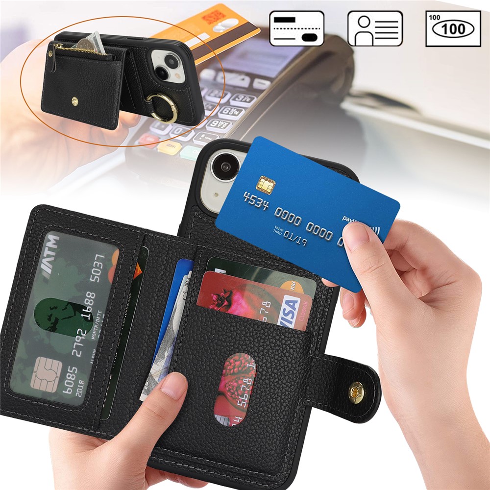 - Zipper Wallet with Multiple Card Slots Designed with a practical zipper wallet section and multiple card slots secured by a snap-button flap, making it easy to store your ID, credit cards, cash, or transit passes securely on the go