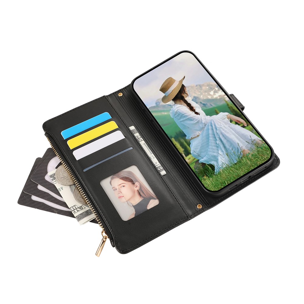 - Zipper Wallet Design Side zipper pocket allows secure storage of coins, bills, or cards, combining fashion and function