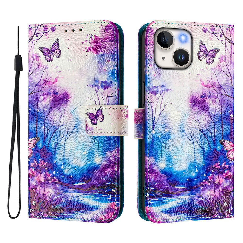 For iPhone 15 Case Pattern Printing Wallet Phone Cover with Strap – Dream Valley