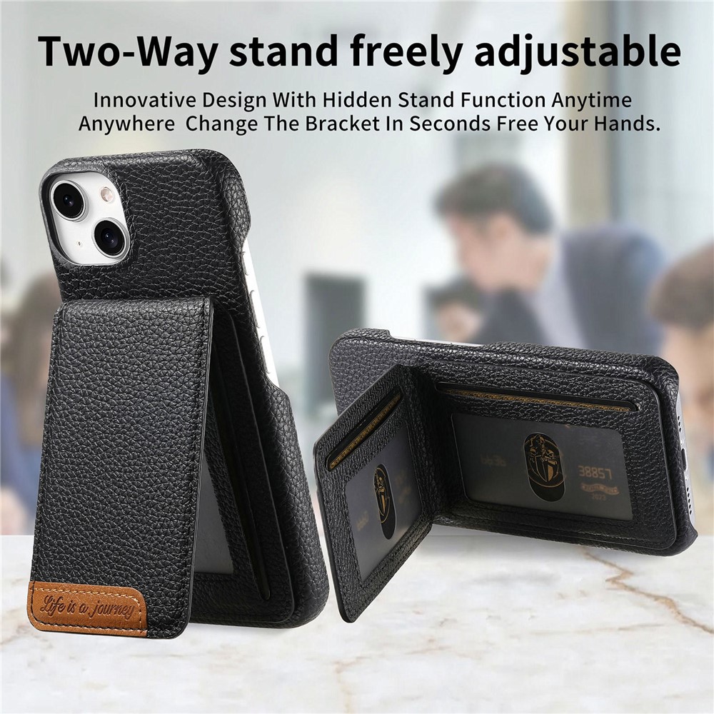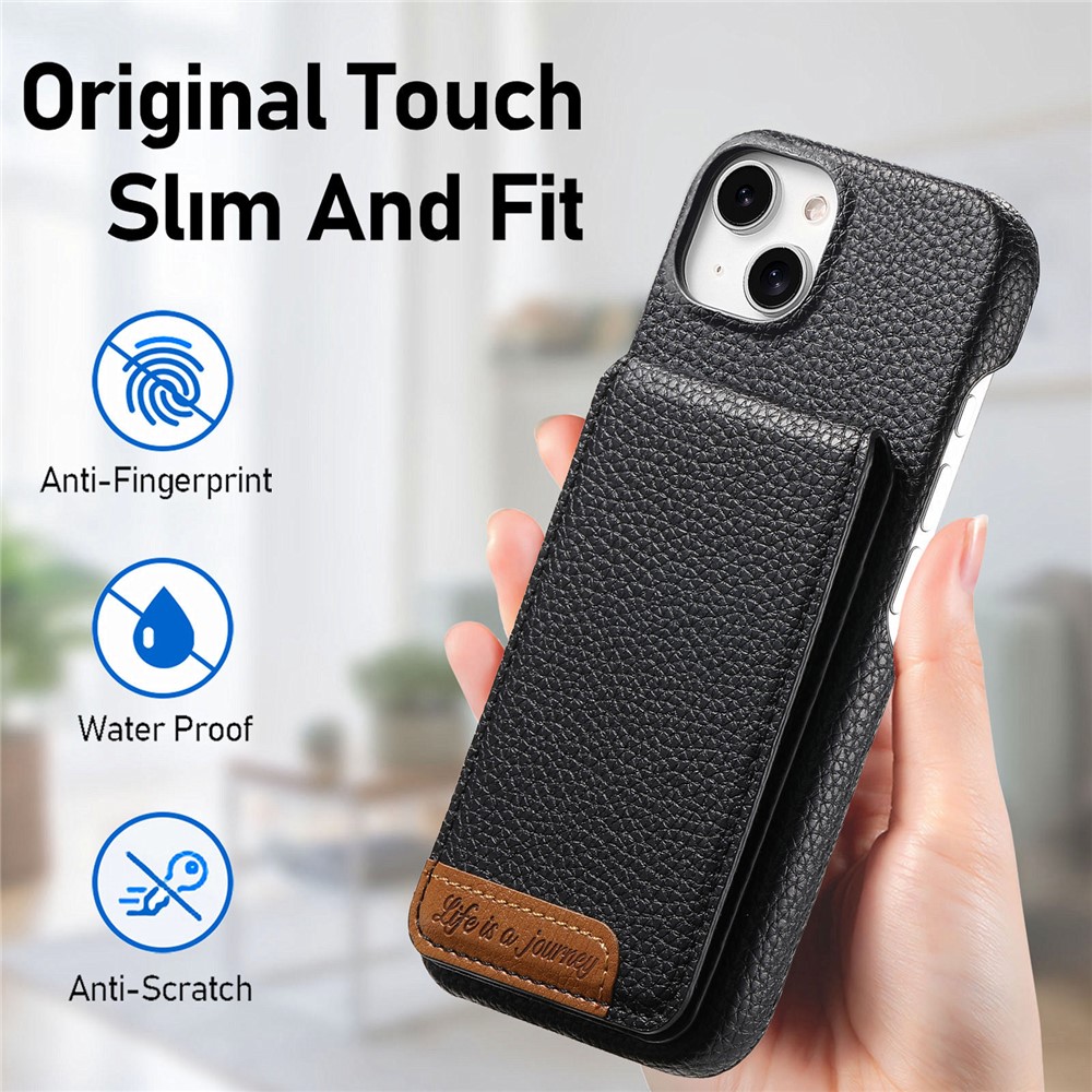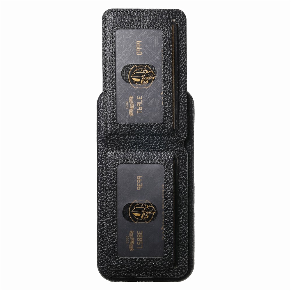 - Hidden Card Slots Features two concealed vertical flip compartments with card windows, ideal for storing ID and credit cards securely