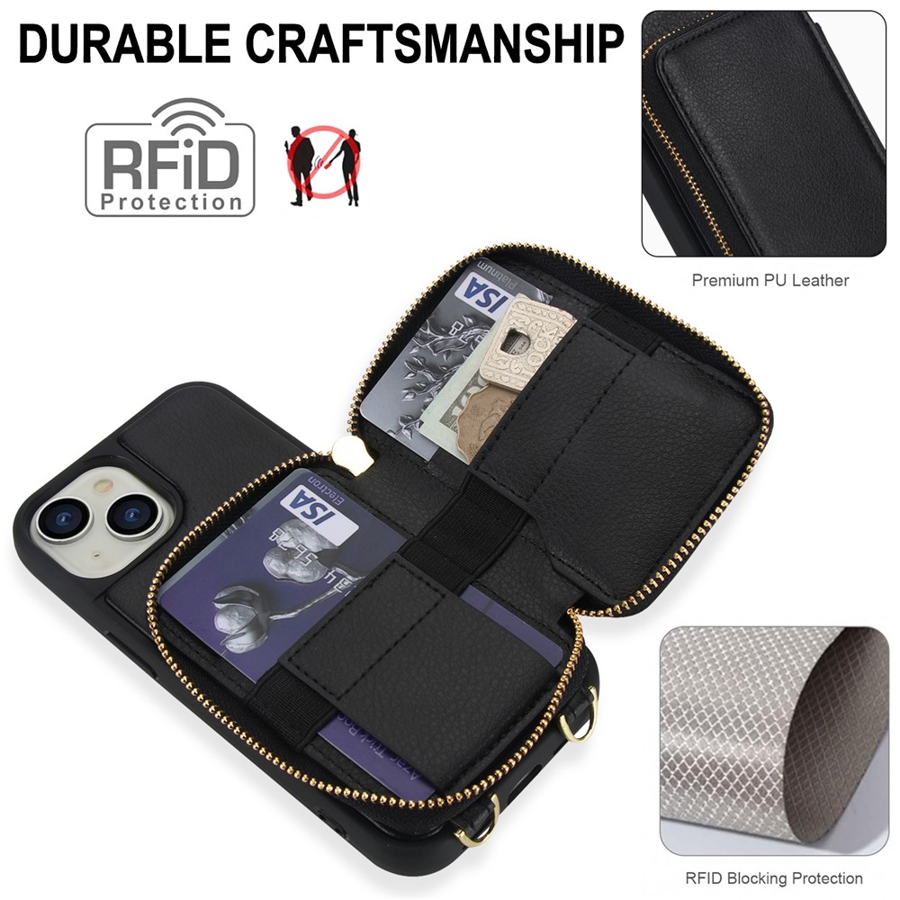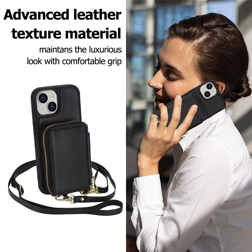 - 2-in-1 Crossbody Wallet Case Combines a phone case and zip wallet design, allowing you to carry cards, cash, and your phone together in one stylish accessory.