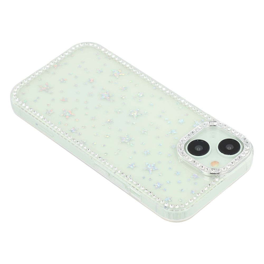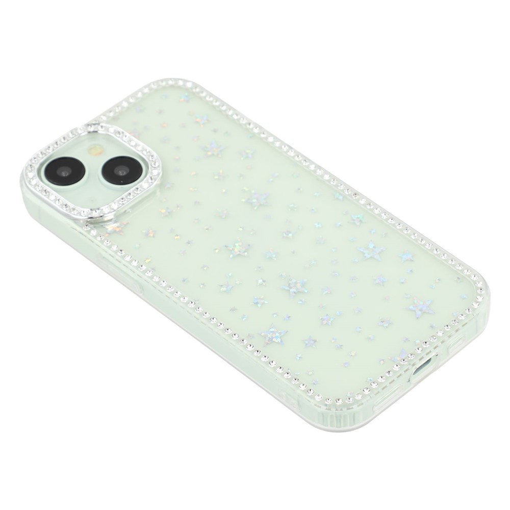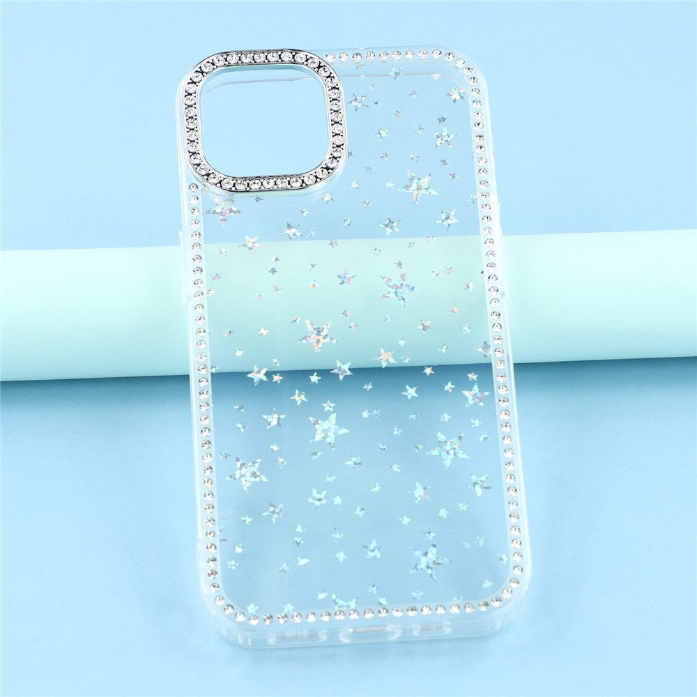 - Sparkling Design Features rhinestone detailing around the frame and camera, complemented by a glitter-infused back for a stylish, eye-catching look