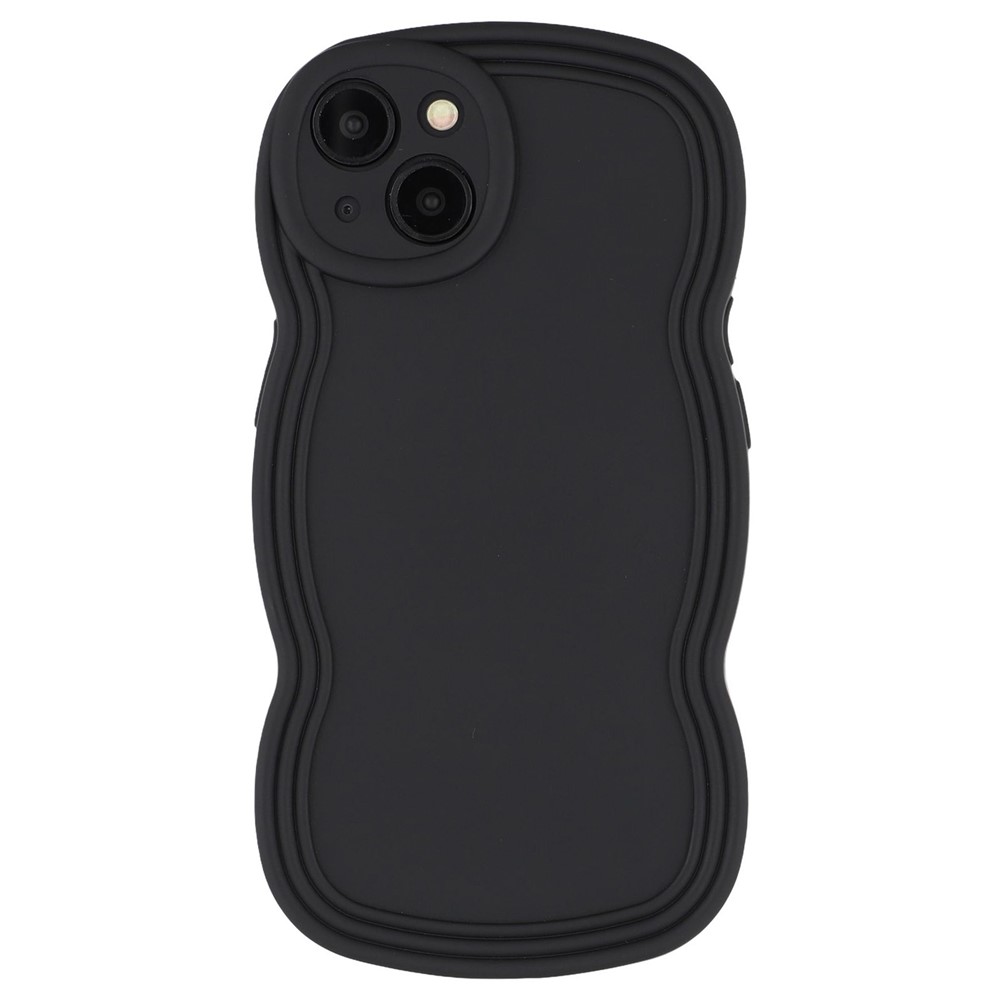 For iPhone 15 Case Rubberized Protective TPU Phone Cover Curly Wave Frame – Black