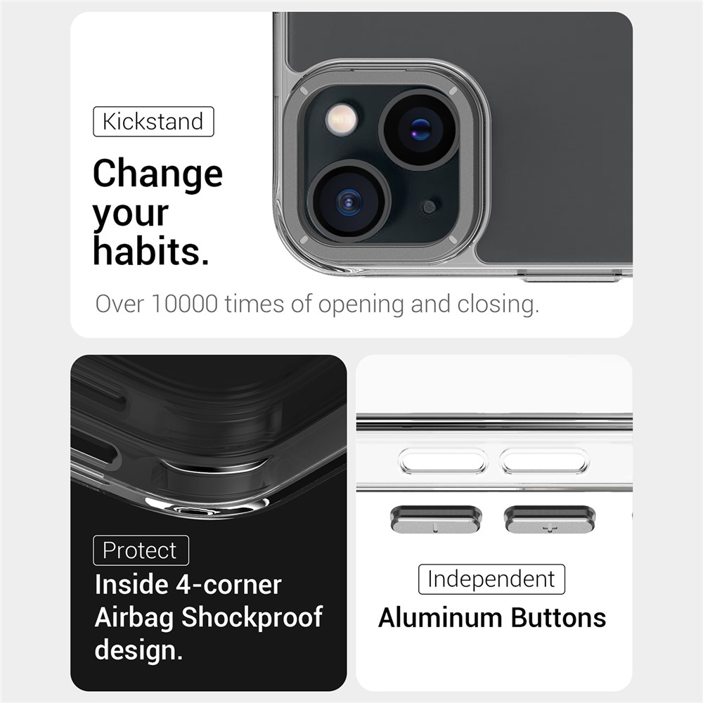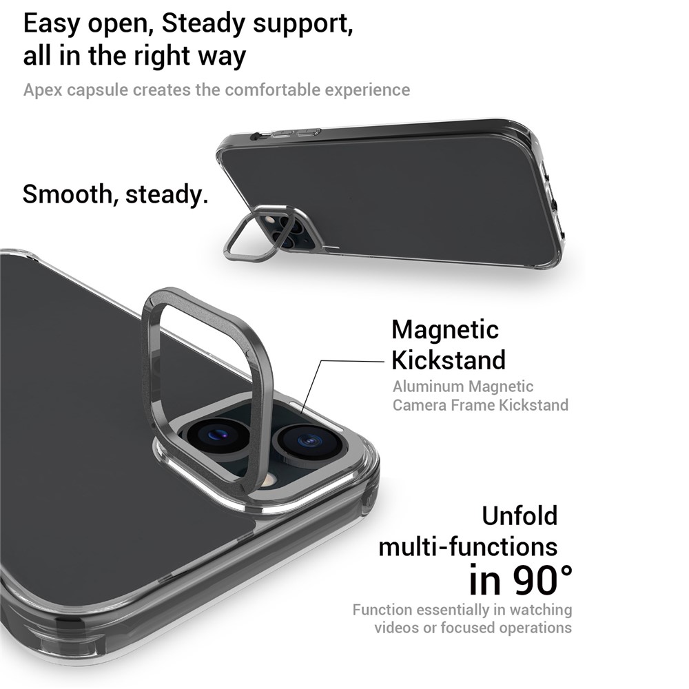 - Camera Frame Kickstand Metal lens kickstand with damping design allows free-angle adjustments (0-90°) for hands-free viewing, photography, or travel convenience