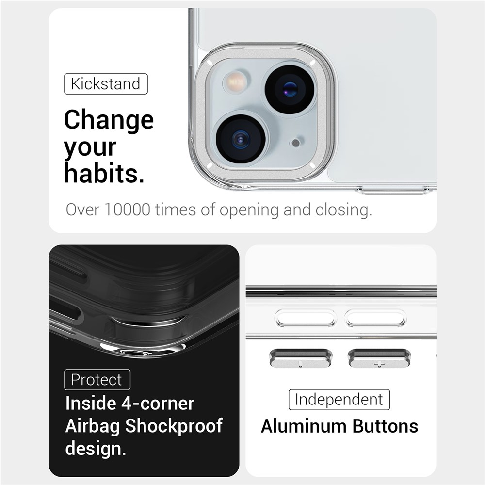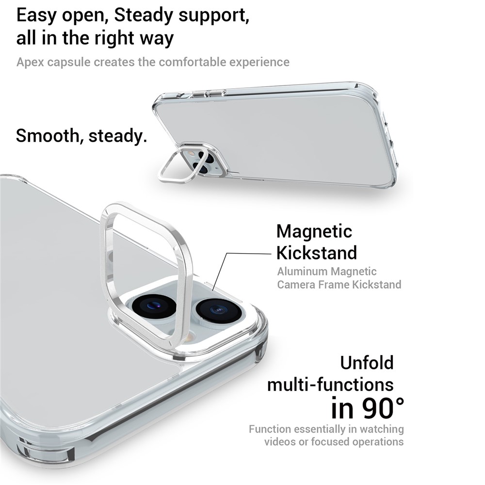 - Camera Frame Kickstand Metal lens kickstand with damping design allows free-angle adjustments (0-90°) for hands-free viewing, photography, or travel convenience