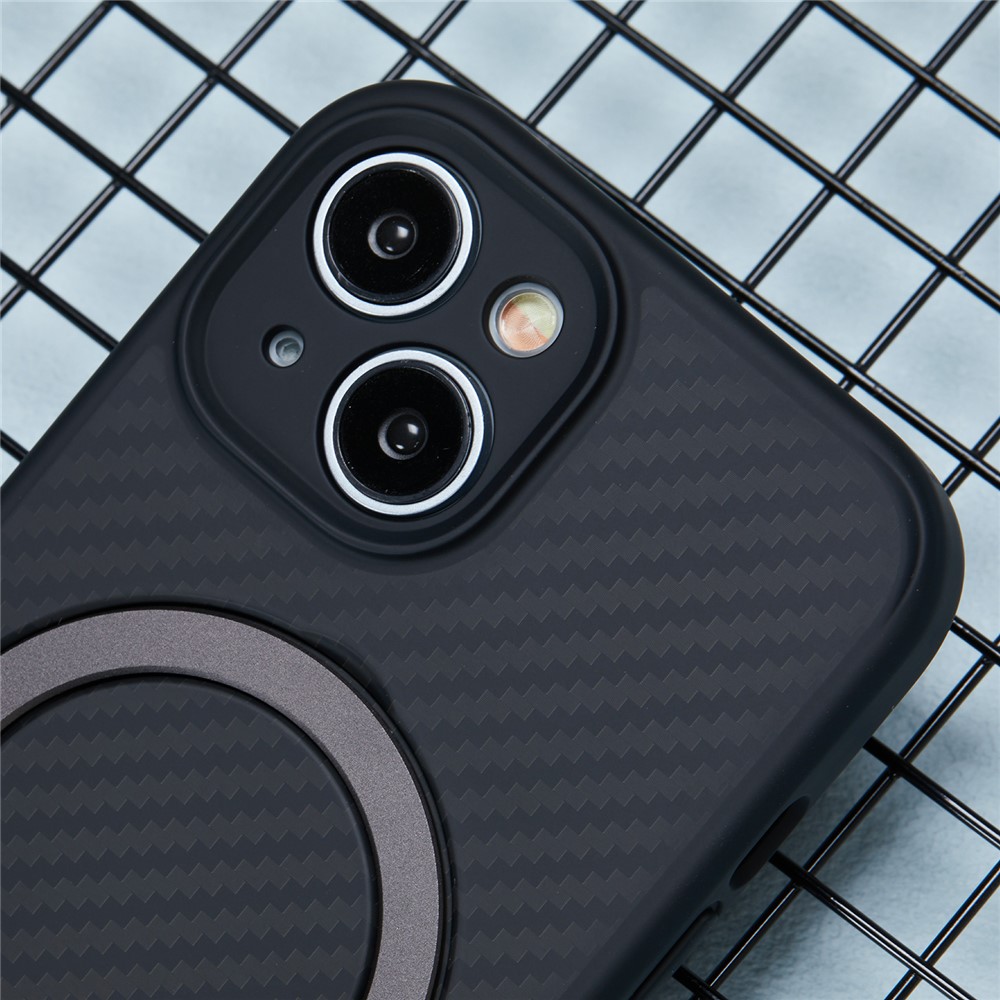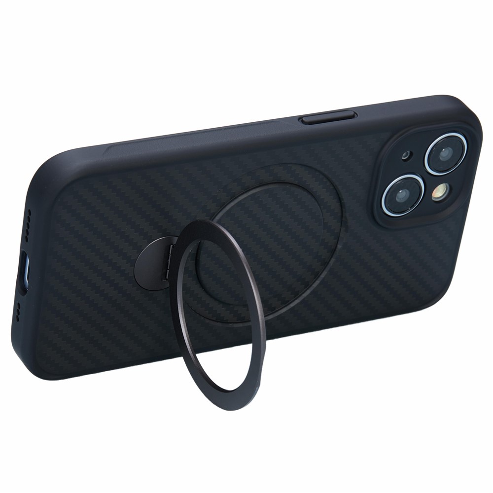 For iPhone 15 Case TPU+PC Carbon Fiber Texture Phone Cover with Rotatable Magnetic Kickstand