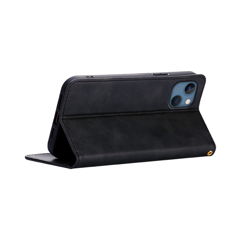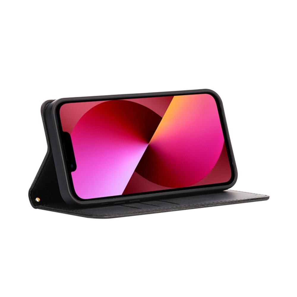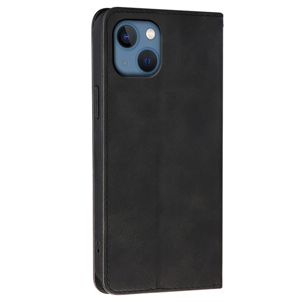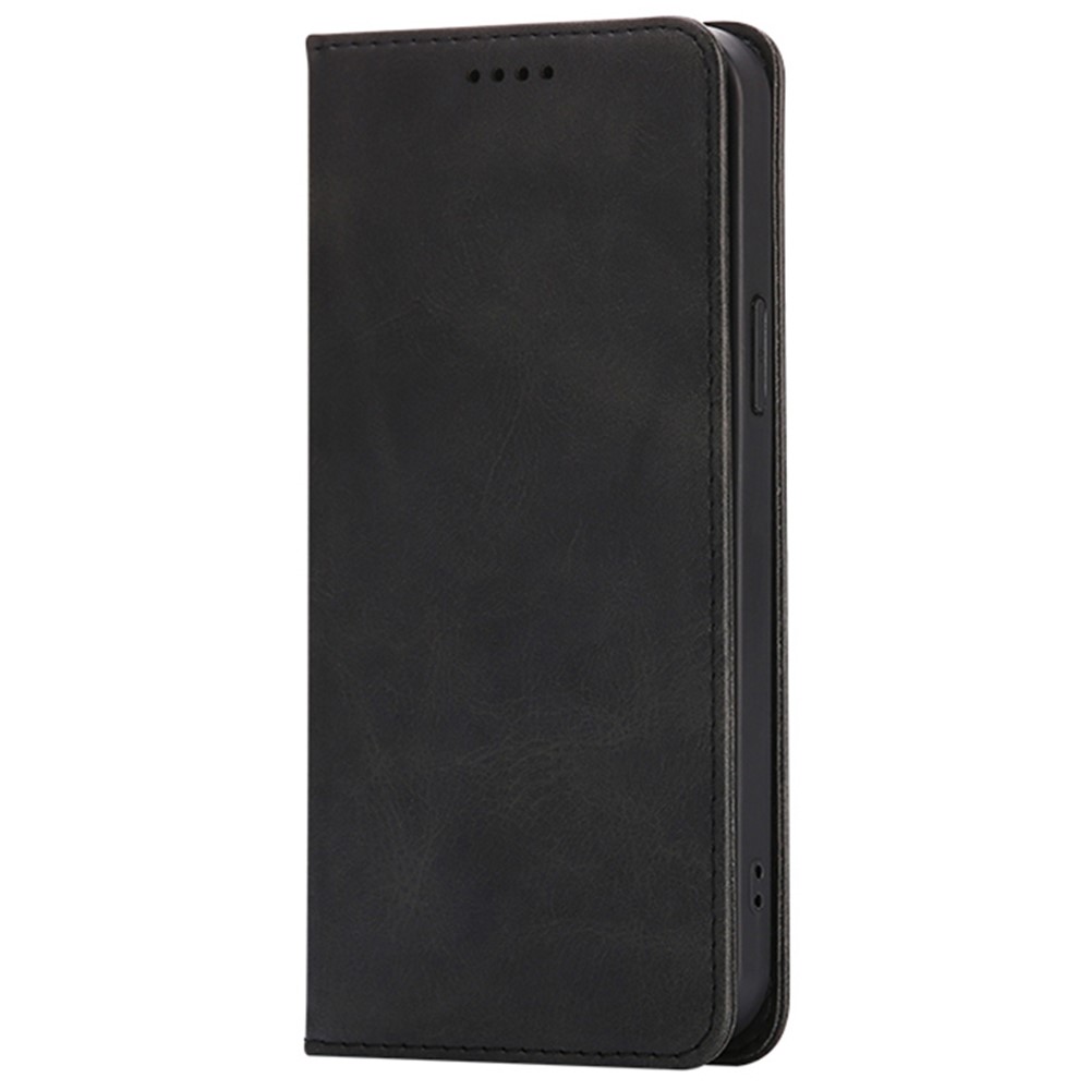 For iPhone 15 Case Wallet Calf Texture Leather Phone Cover with Hidden Magnetic Closure - Black