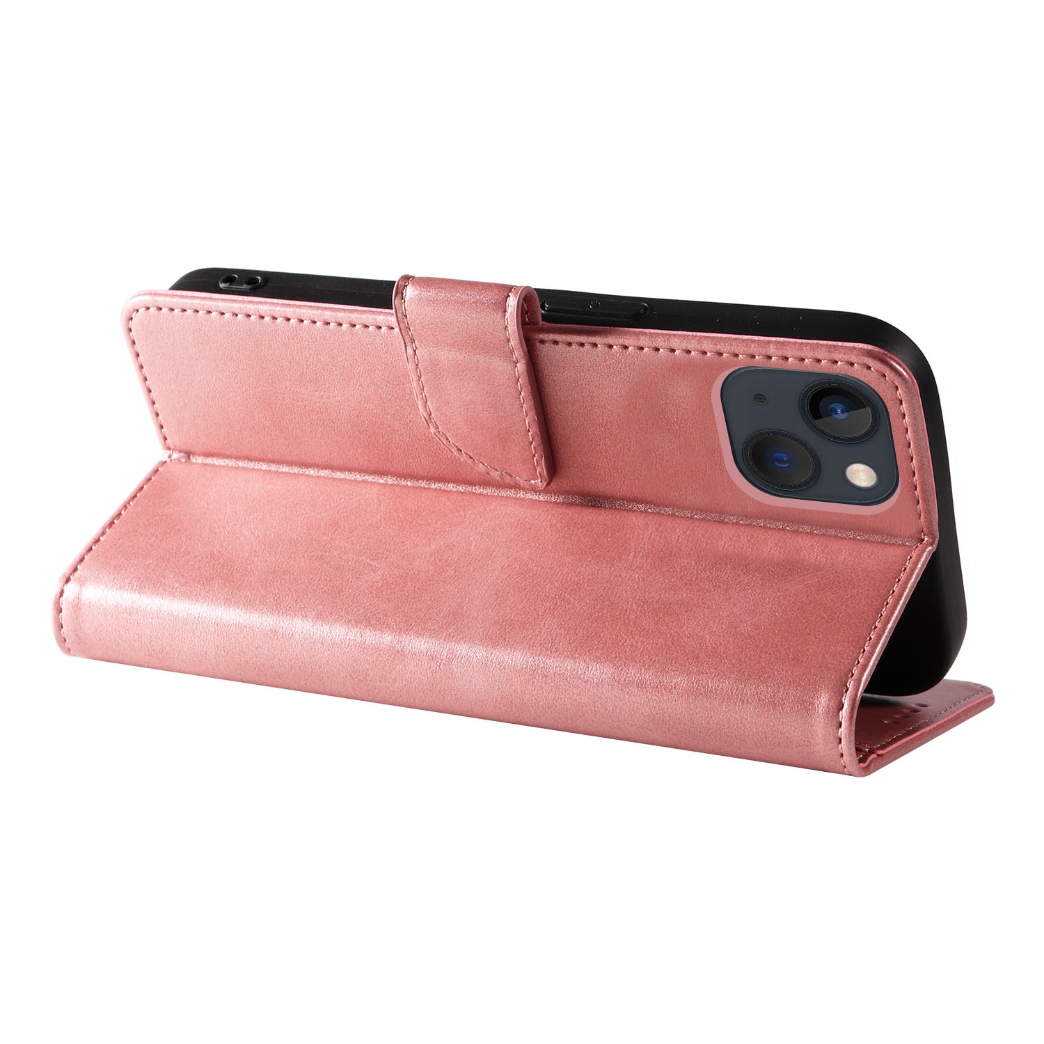 For iPhone 15 Case with 2Pcs Tempered Glass WANLONFENG WN Series Calf Texture Leather Phone Cover Big Cutouts – Pink