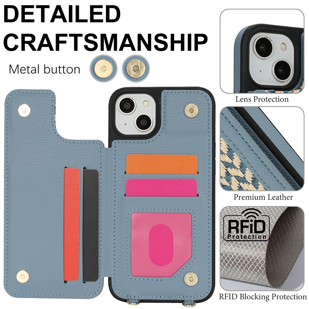 - Multi-Functional Card Slot Features a button-closure card holder on the back that securely stores your cards and doubles as a kickstand for hands-free viewing
