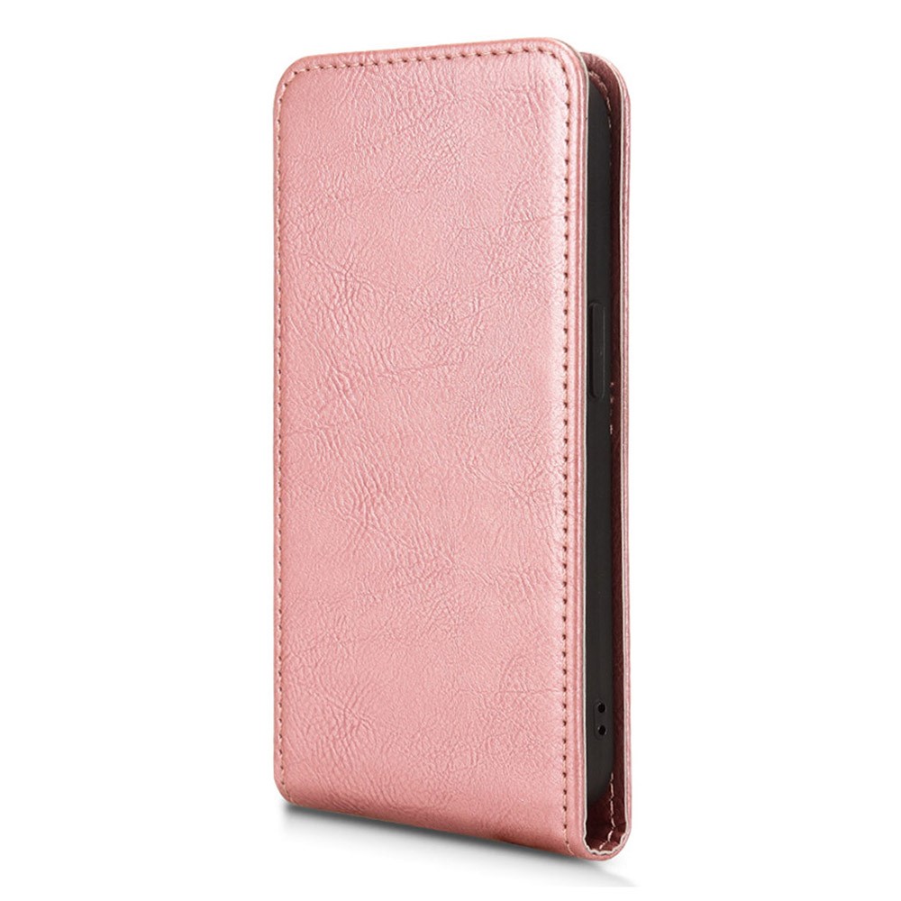 For iPhone 15 Case with Card Slot Magnetic Vertical Flip Leather Phone Cover – Rose Gold