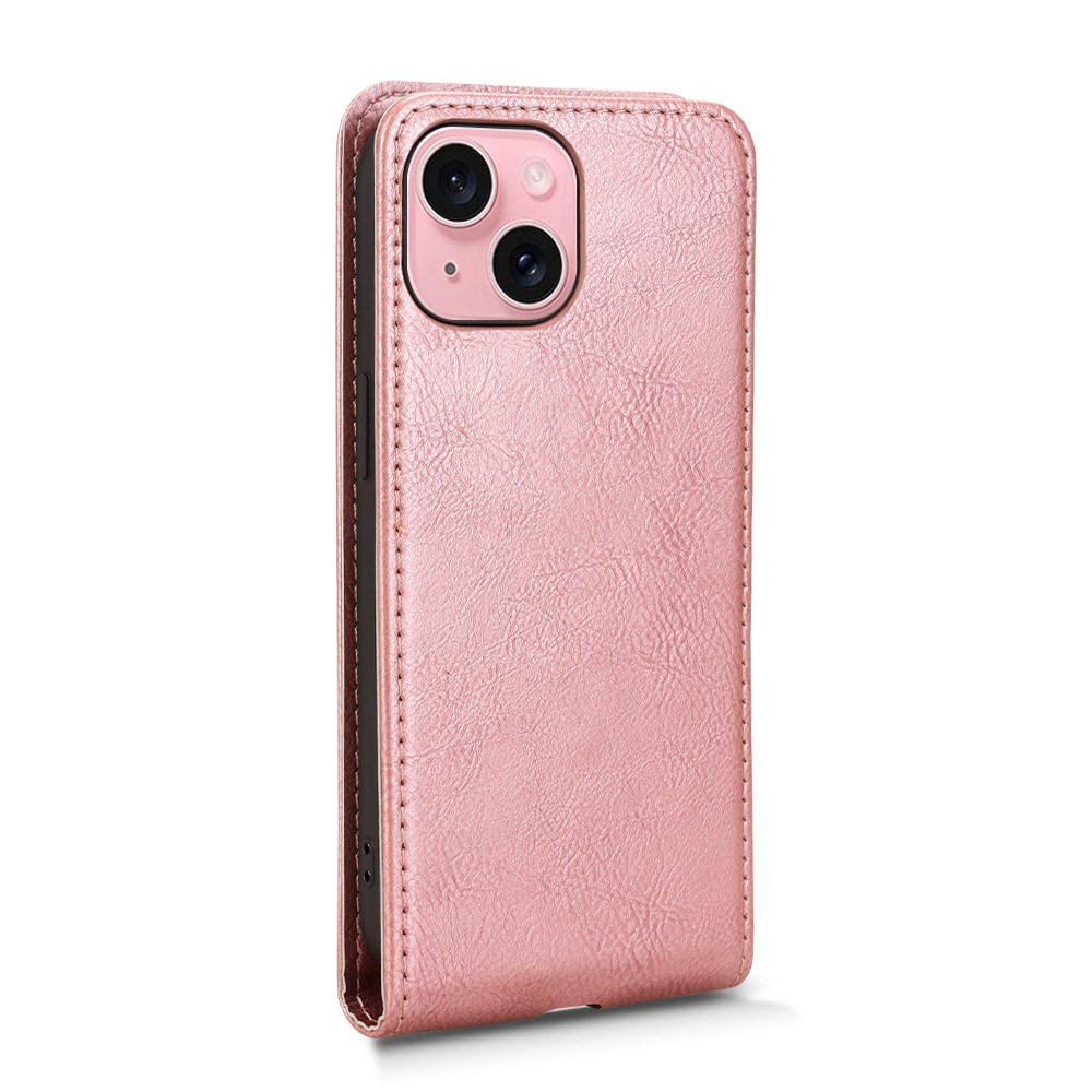For iPhone 15 Case with Card Slot Magnetic Vertical Flip Leather Phone Cover - Rose Gold