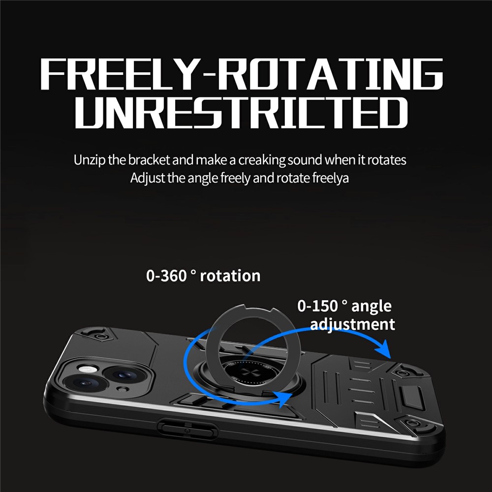 - Metal Ring Kickstand Built-in metal ring kickstand supports 360° rotation and 150° tilt adjustment, perfect for hands-free viewing in both portrait and landscape modes.