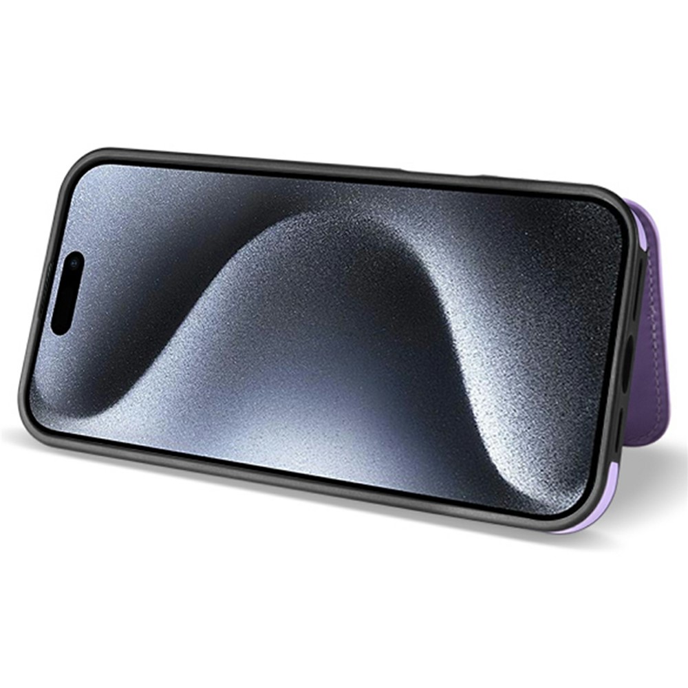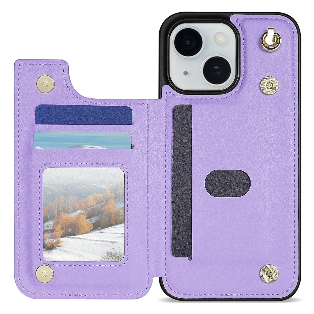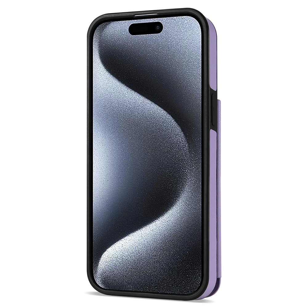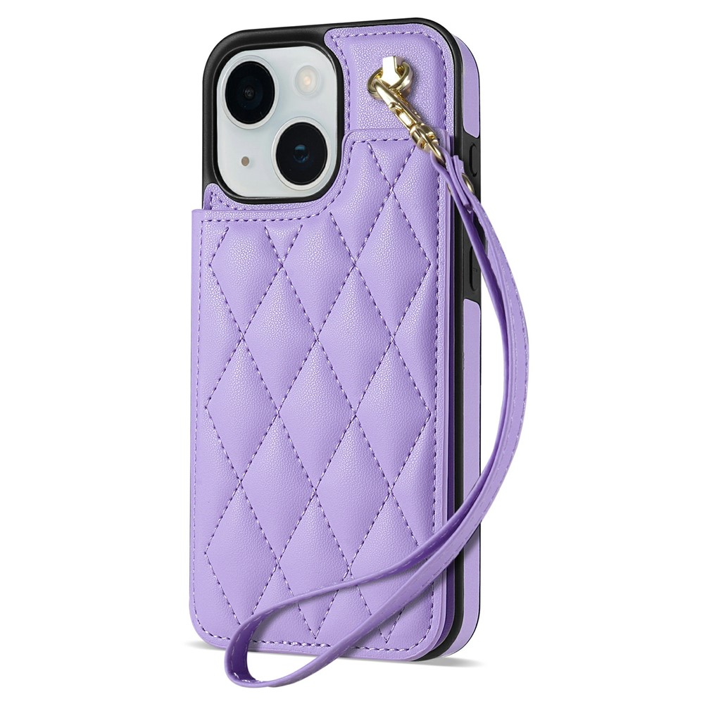 For iPhone 15 Case with Wrist Strap Card Slots Rhombus Leather + TPU Phone Cover – Purple