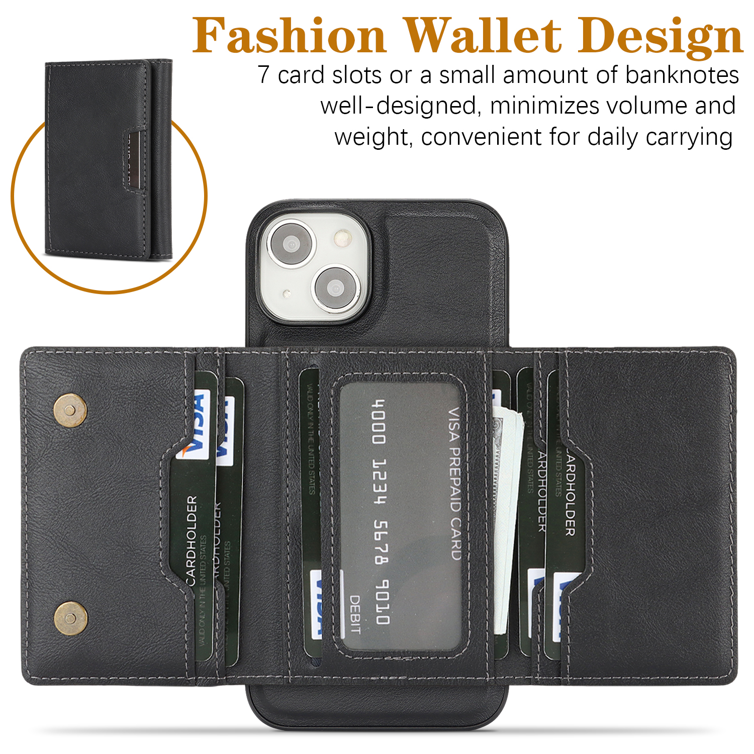 - Multiple Card Slots Designed with multiple card slots to securely store ID cards, credit cards, driver’s licenses, or cash.