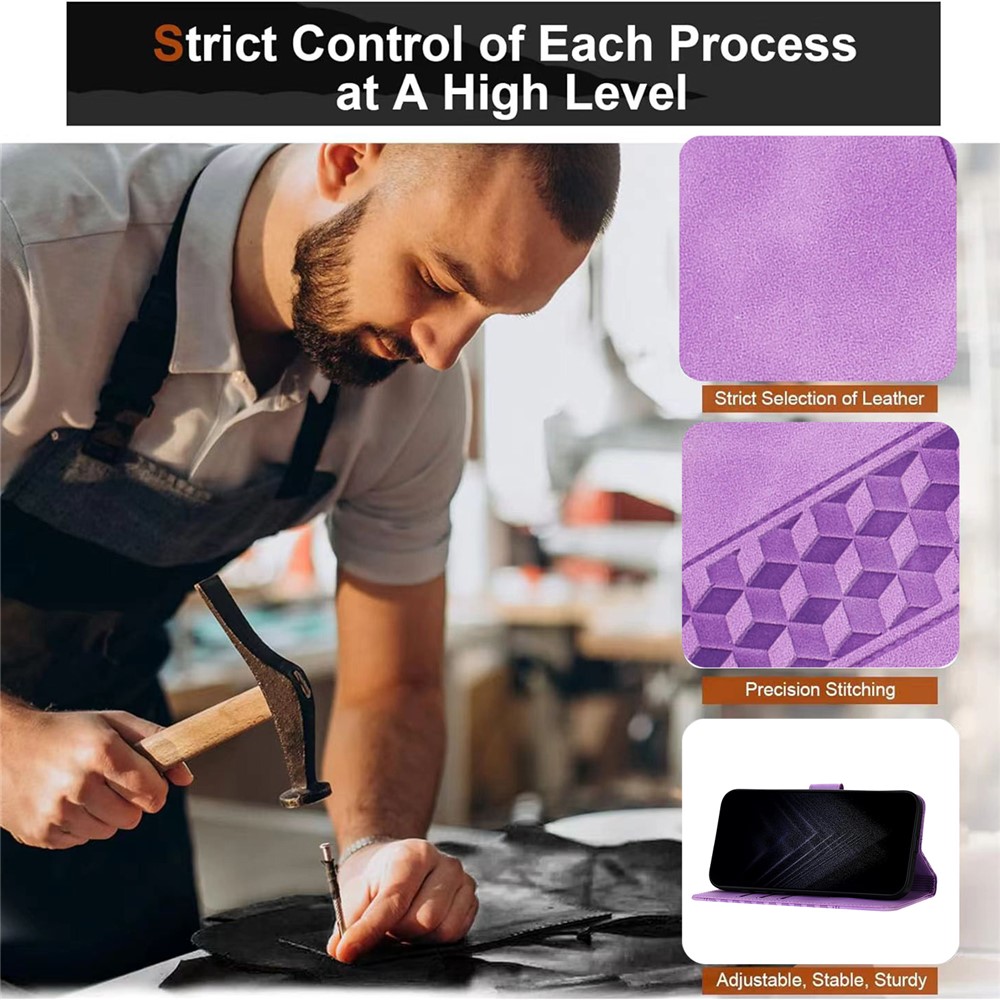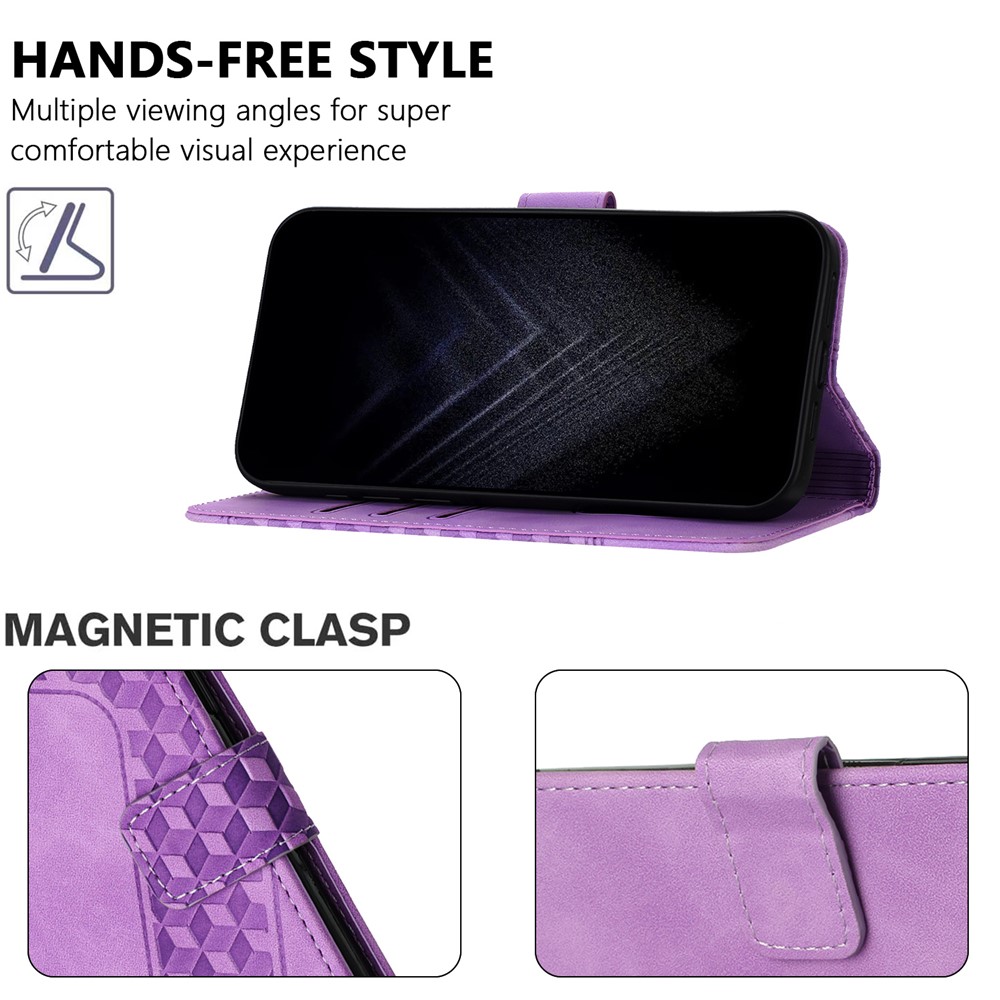 For iPhone 15 Leather Case 7-Shaped Pattern Wallet Stand Shockproof Phone Cover – Purple