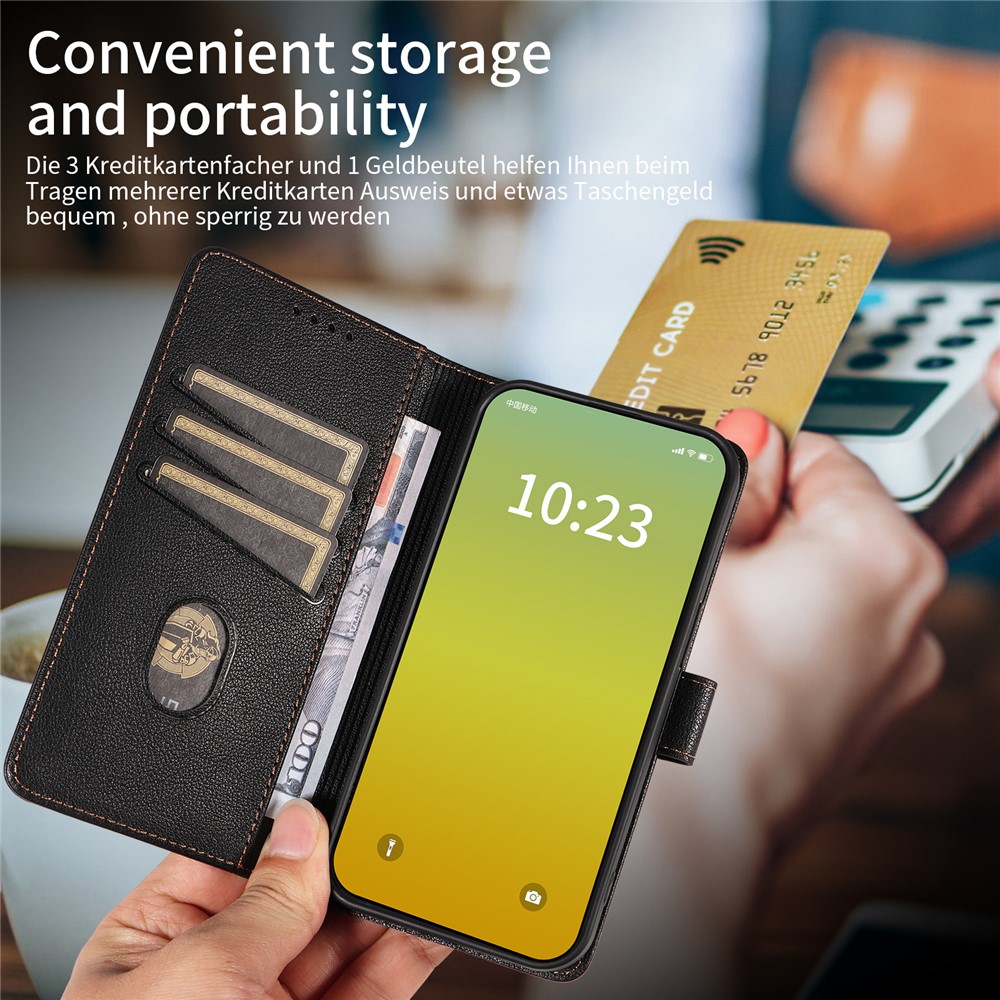 - Secure Magnetic Closure Equipped with a strong magnet for automatic closure, it ensures safe and easy management of your cards and cash, keeping everything securely in place