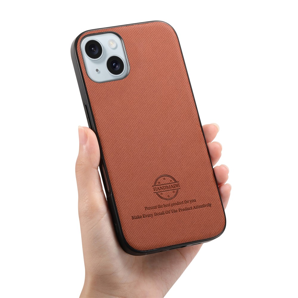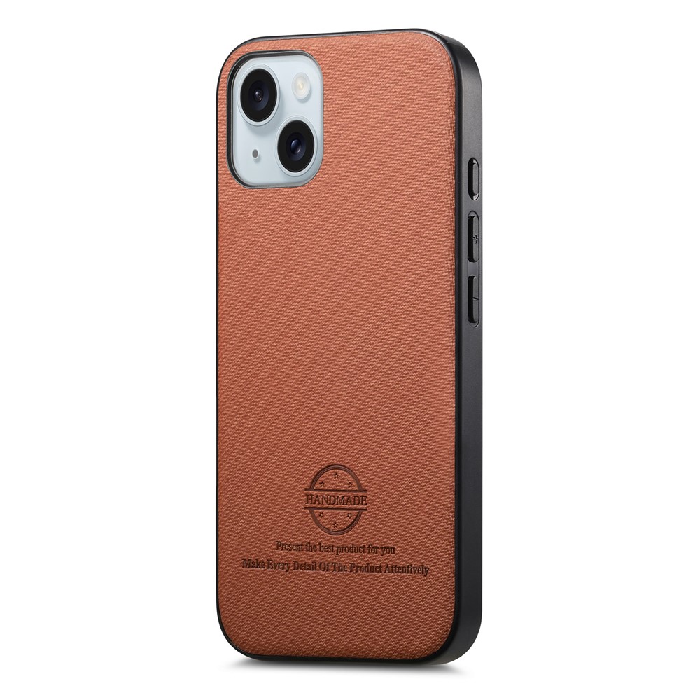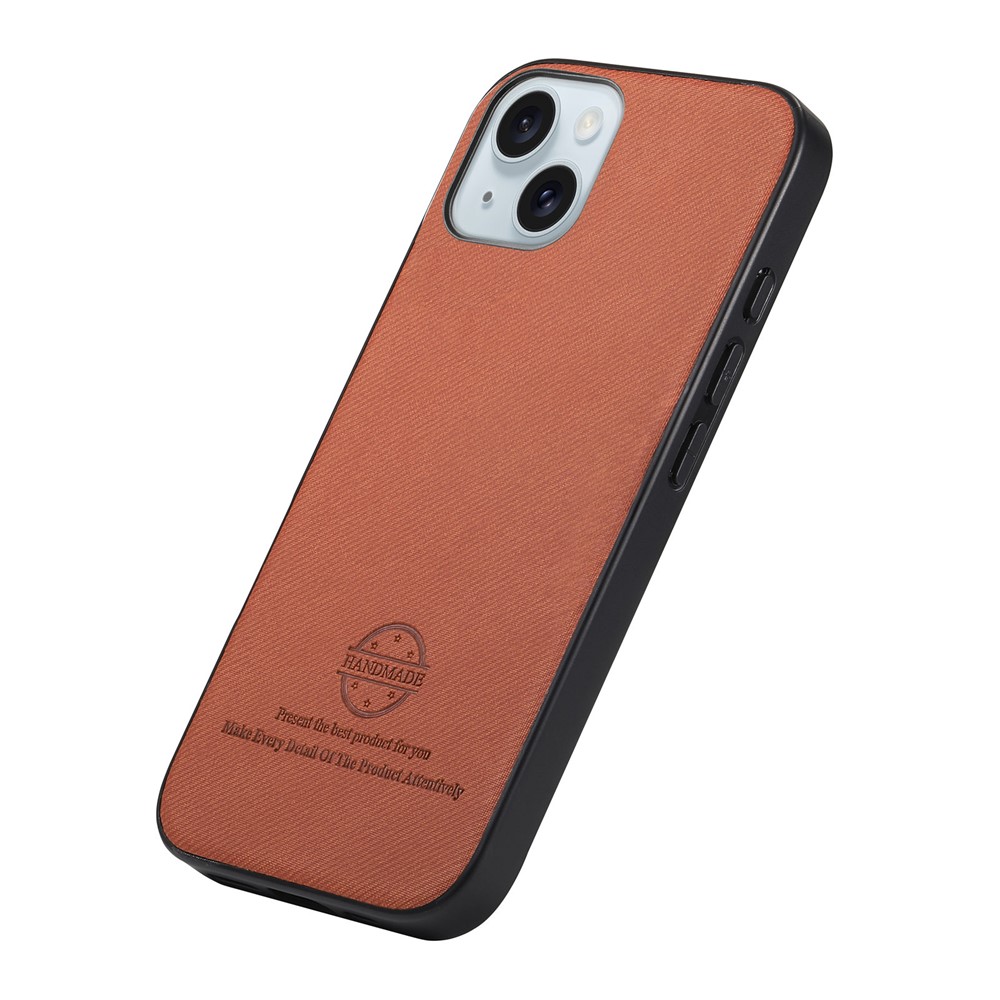 For iPhone 15 Leather Phone Back Cover with Cloth Texture – Brown