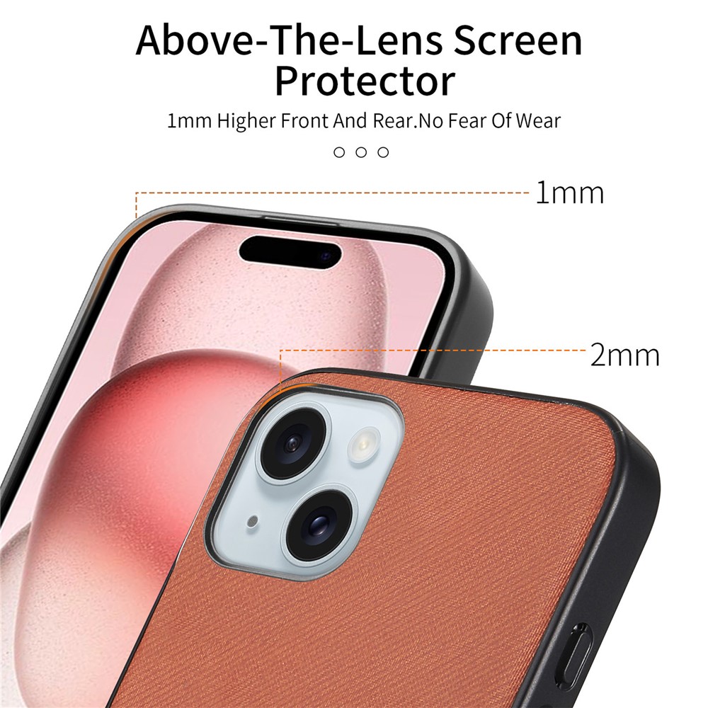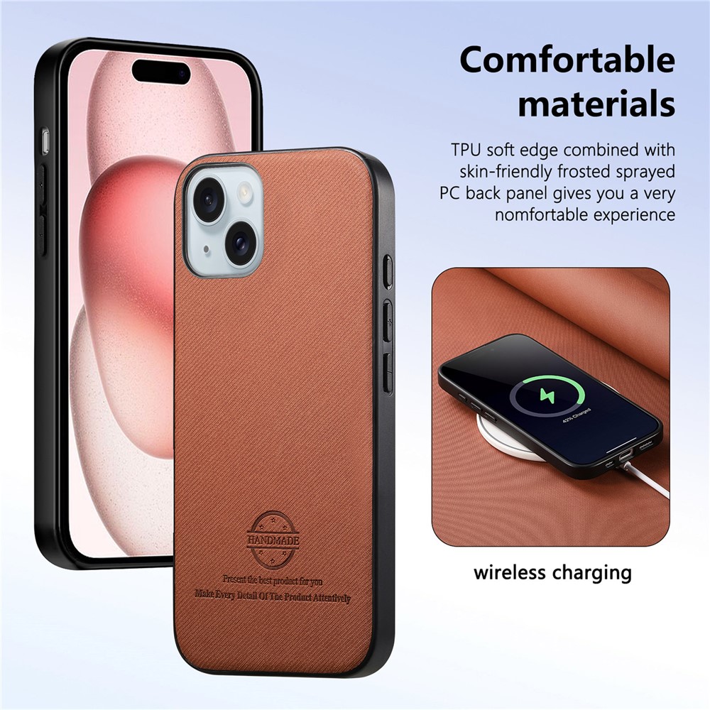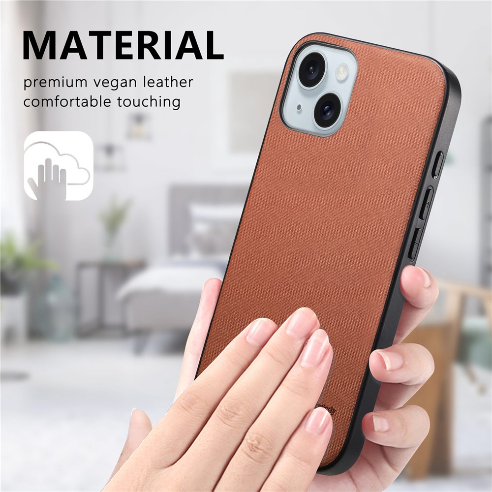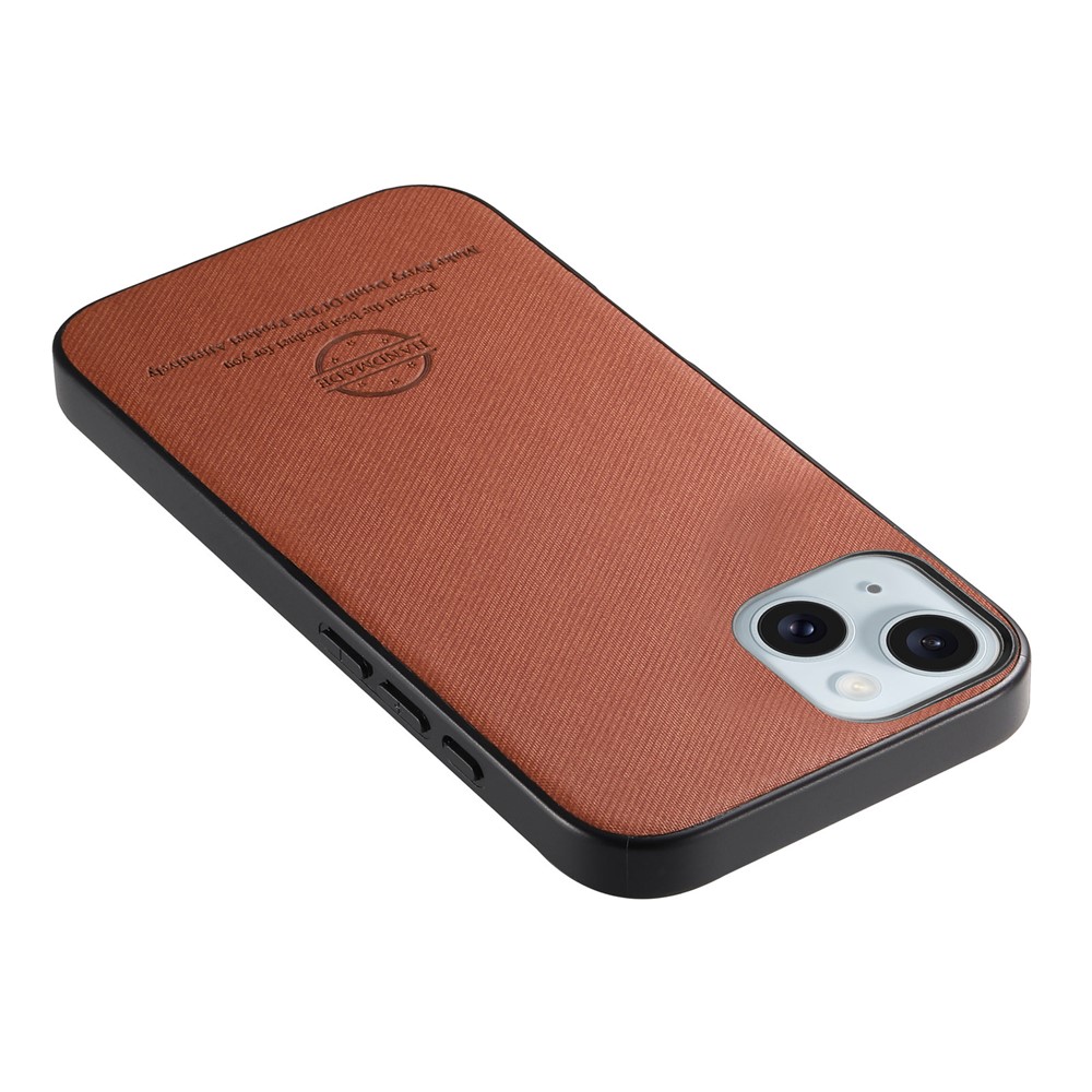 For iPhone 15 Leather Phone Back Cover with Cloth Texture – Brown