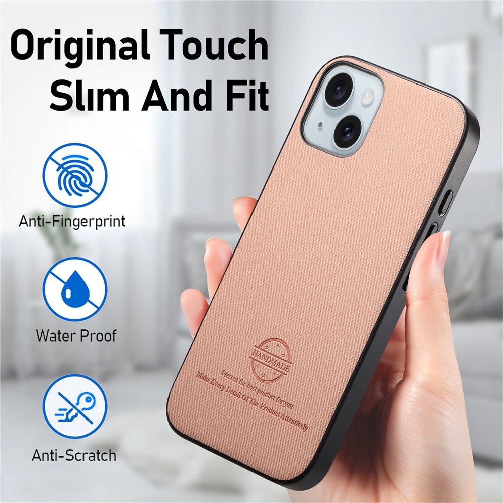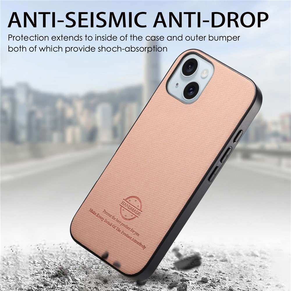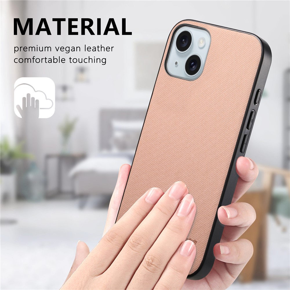 • For iPhone 15 Leather Phone  Back Cover with Cloth Texture - Khaki
