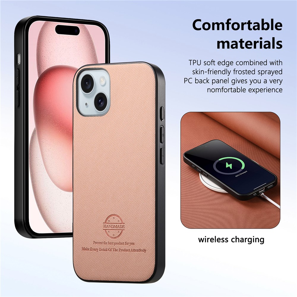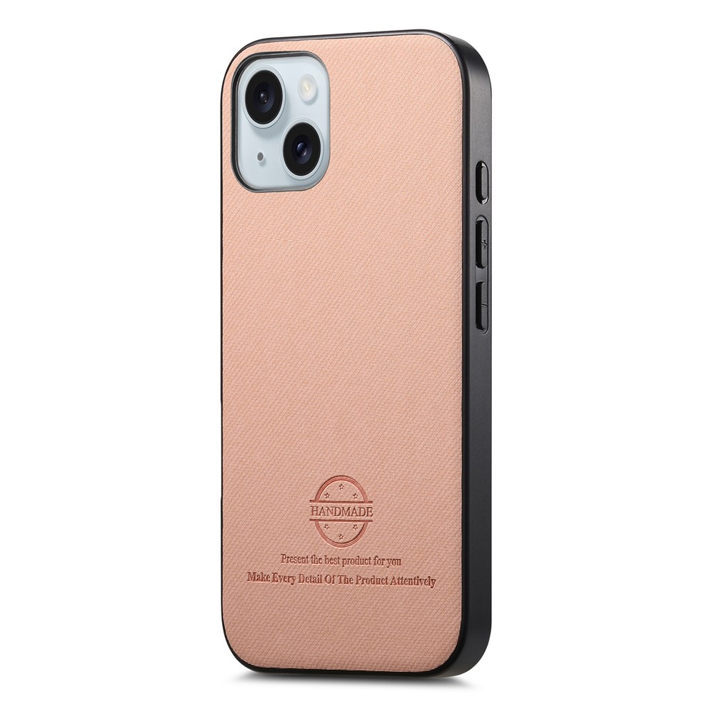 For iPhone 15 Leather Phone  Back Cover with Cloth Texture - Pink
