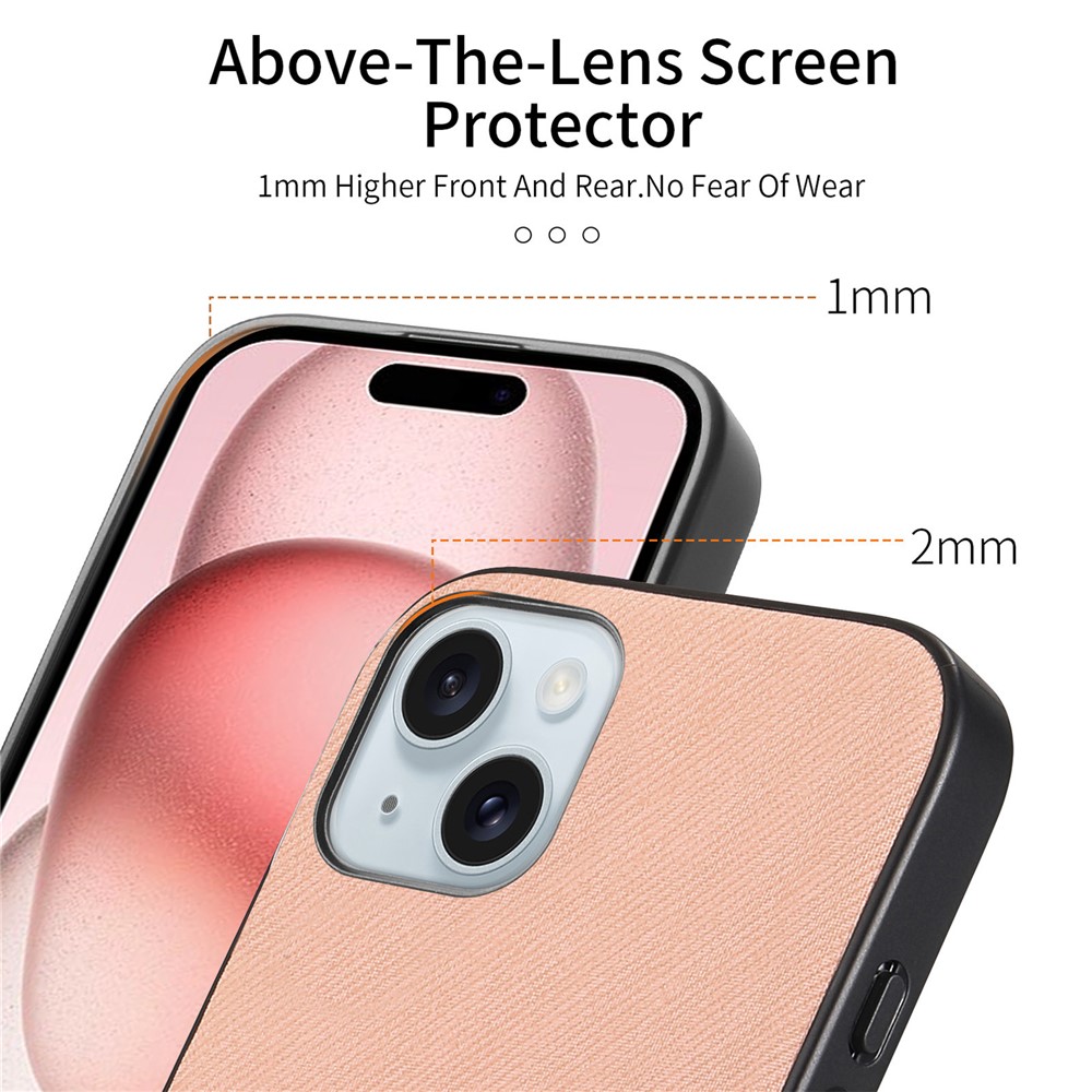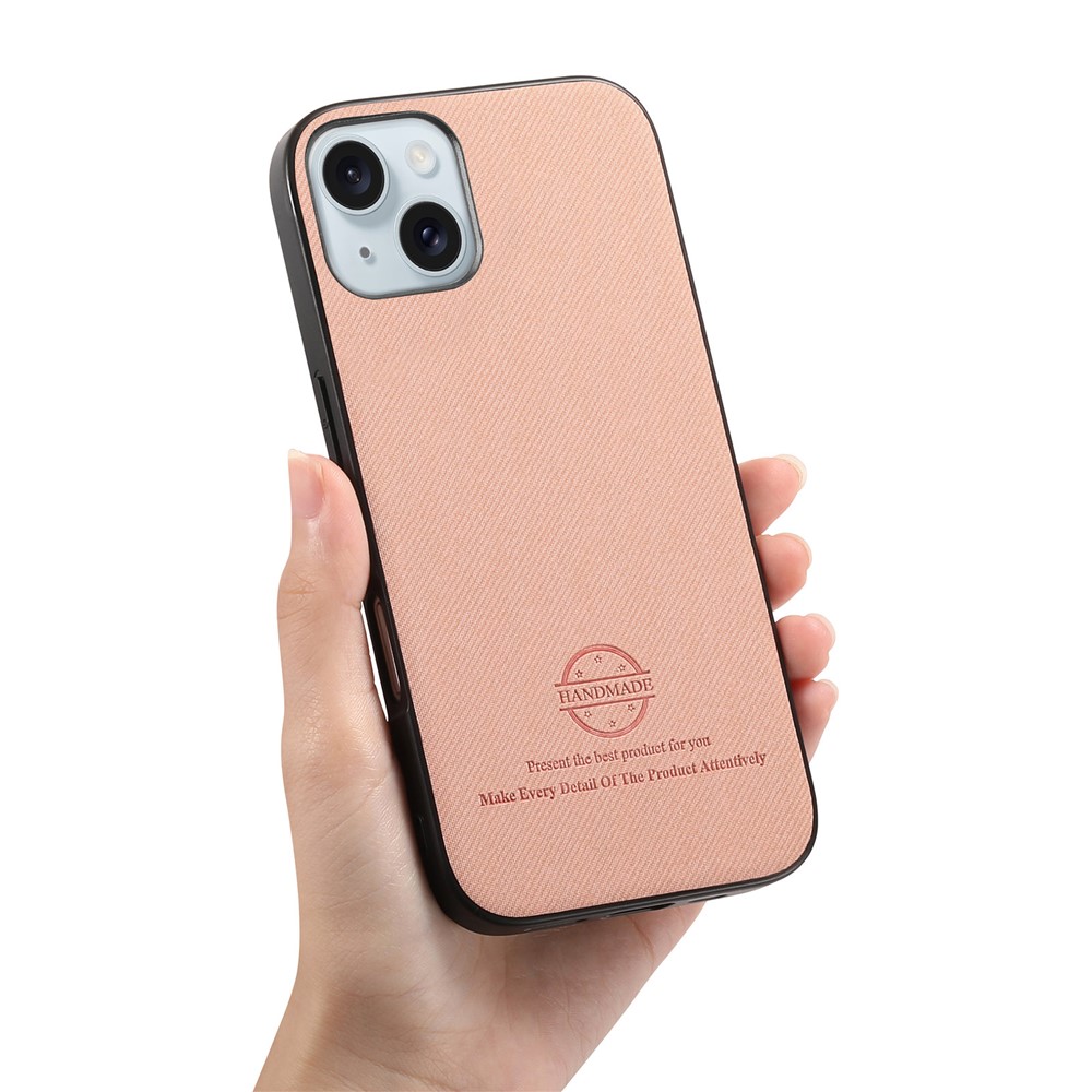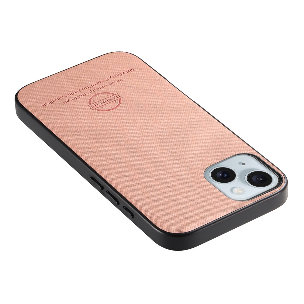 For iPhone 15 Leather Phone Back Cover with Cloth Texture – Pink