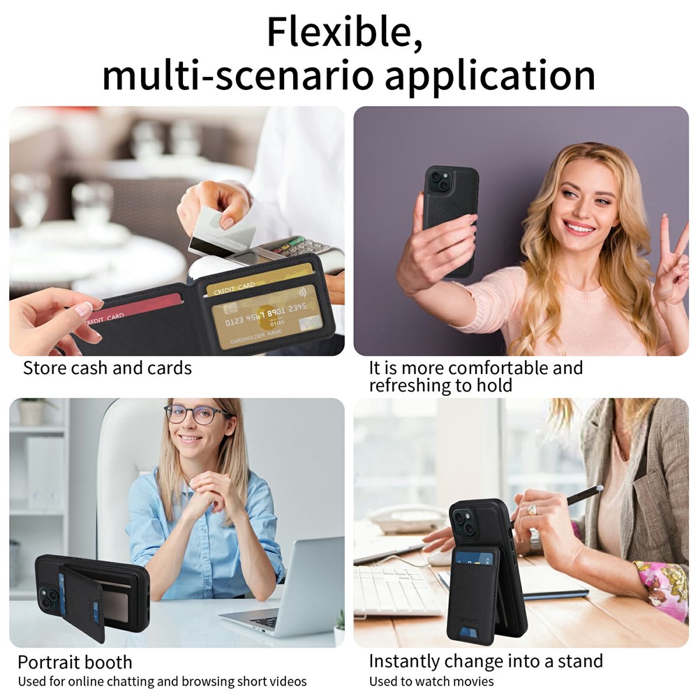 - Kickstand Feature The card holder doubles as a kickstand for hands-free use. This feature is perfect for watching videos or video calls