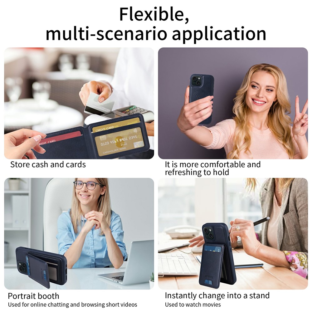 - Kickstand Feature The card holder doubles as a kickstand for hands-free use. This feature is perfect for watching videos or video calls