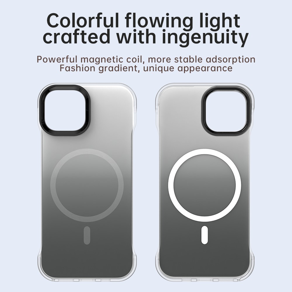 For iPhone 15 Magnetic Case Gradient Design Borderless IMD TPU + PC + PET Phone Cover – Black