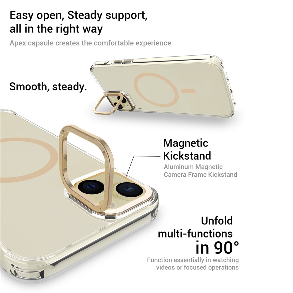 - Camera Frame Kickstand Metal lens kickstand with damping design allows free-angle adjustments (0-90°) for hands-free viewing, photography, or travel convenience