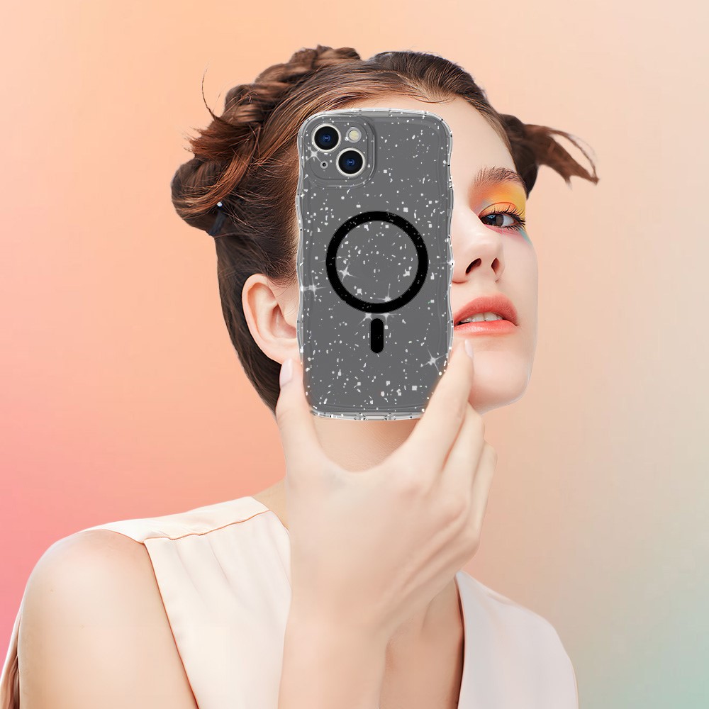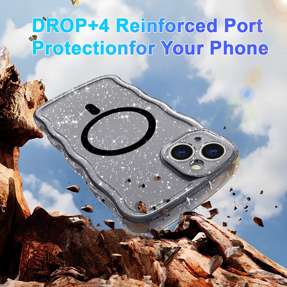 - Wave Edge Glitter Design Features a stylish wave-shaped frame with embedded glitter or vibrant patterns, adding a fashionable and eye-catching touch to your phone