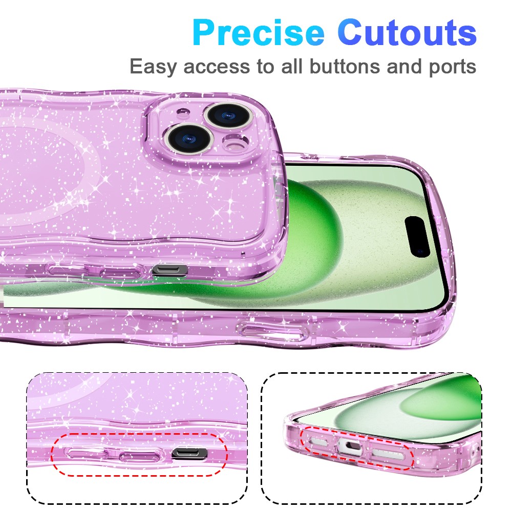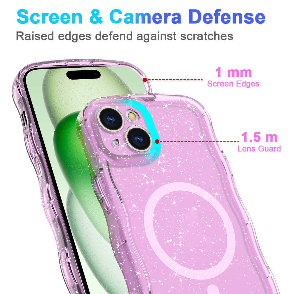 - Wave Edge Glitter Design Features a stylish wave-shaped frame with embedded glitter or vibrant patterns, adding a fashionable and eye-catching touch to your phone