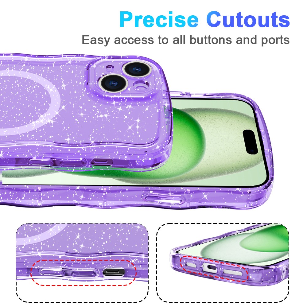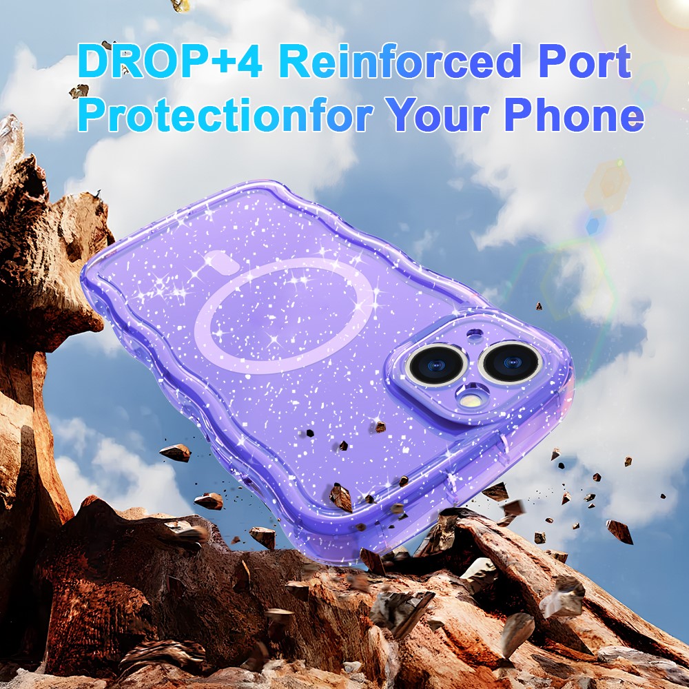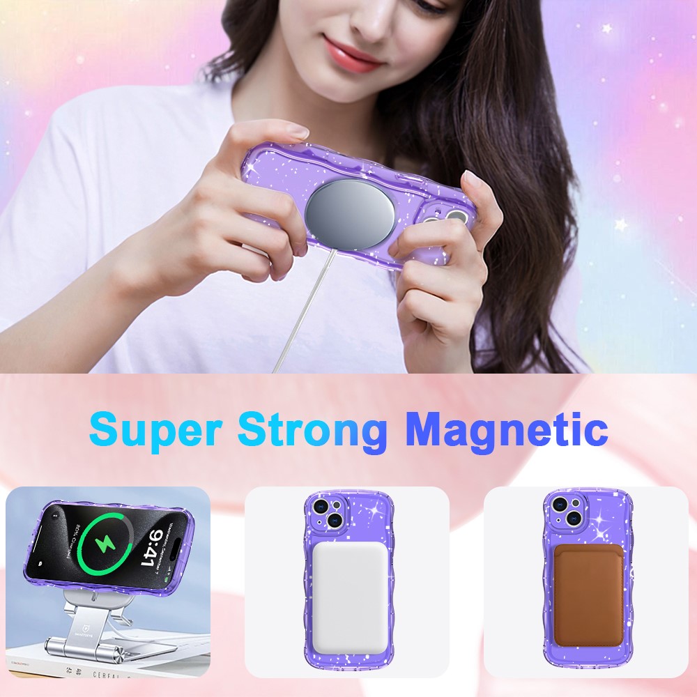 - Wave Edge Glitter Design Features a stylish wave-shaped frame with embedded glitter or vibrant patterns, adding a fashionable and eye-catching touch to your phone