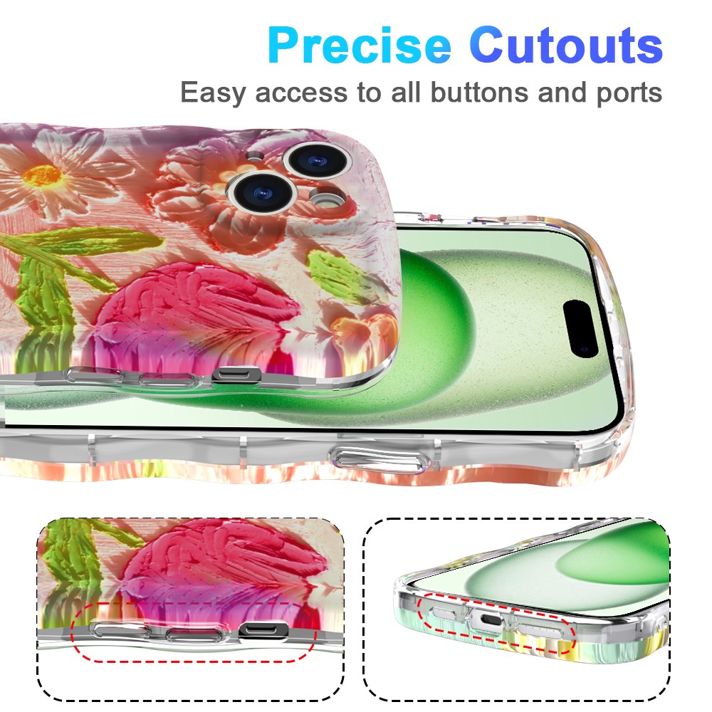 - Wave Edge Floral Design Features a unique wave-shaped frame paired with vibrant floral patterns, adding a fresh, elegant, and fashionable look to your phone