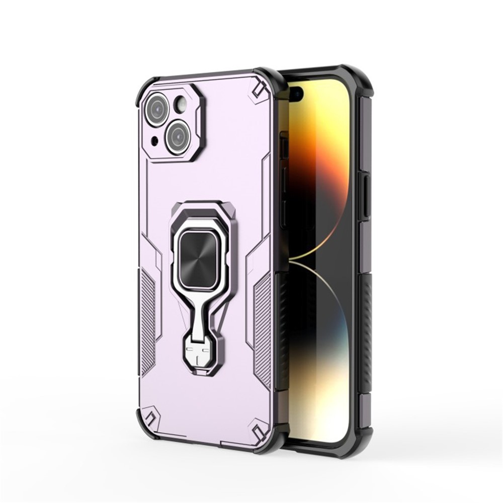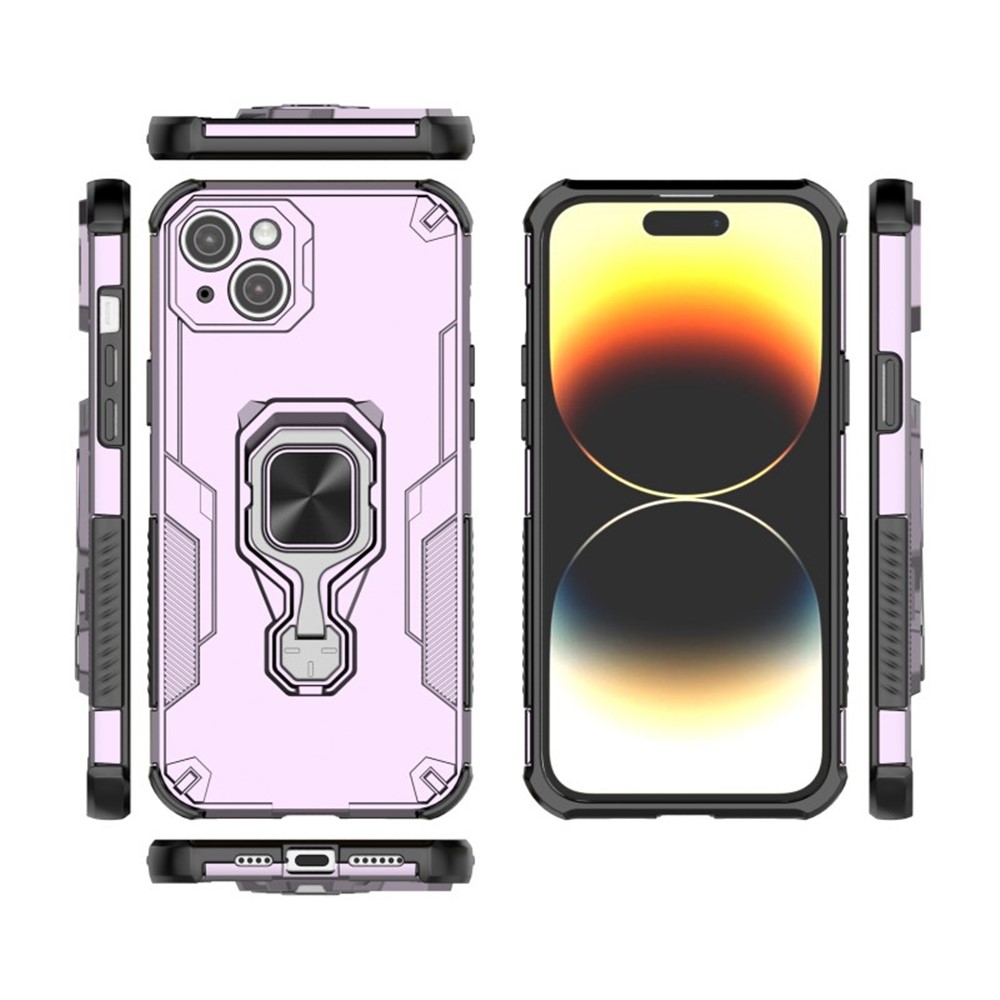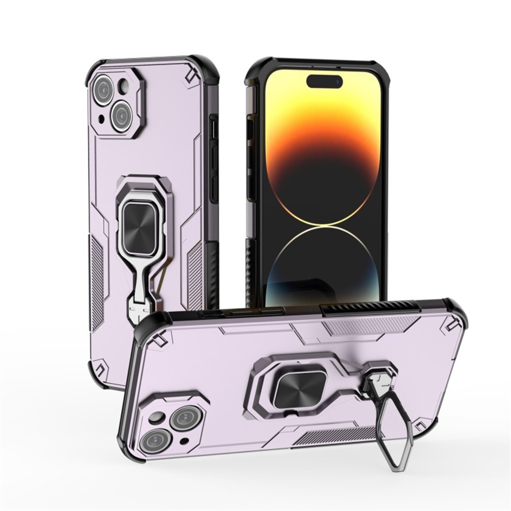 For iPhone 15 Phone Case WANLONFENG PC TPU Back Cover Kickstand with Tempered Glass – Purple