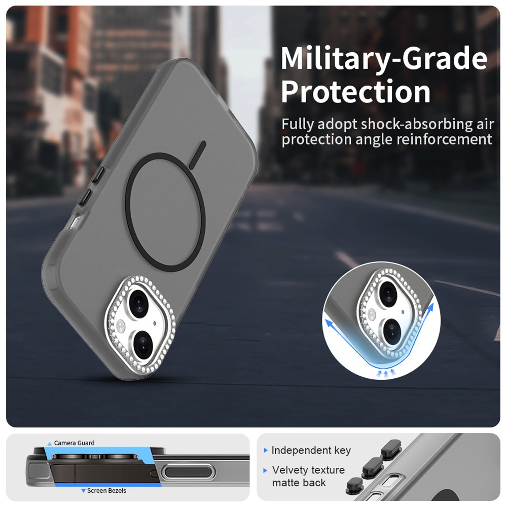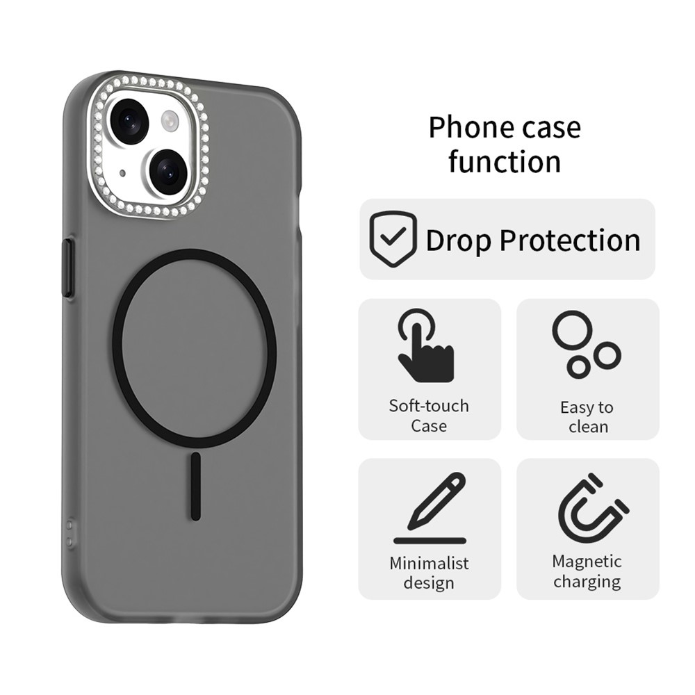 - Elegant Rhinestone Lens Frame Decorated with sparkling rhinestones around the camera lens frame for a touch of glamour and added lens protection