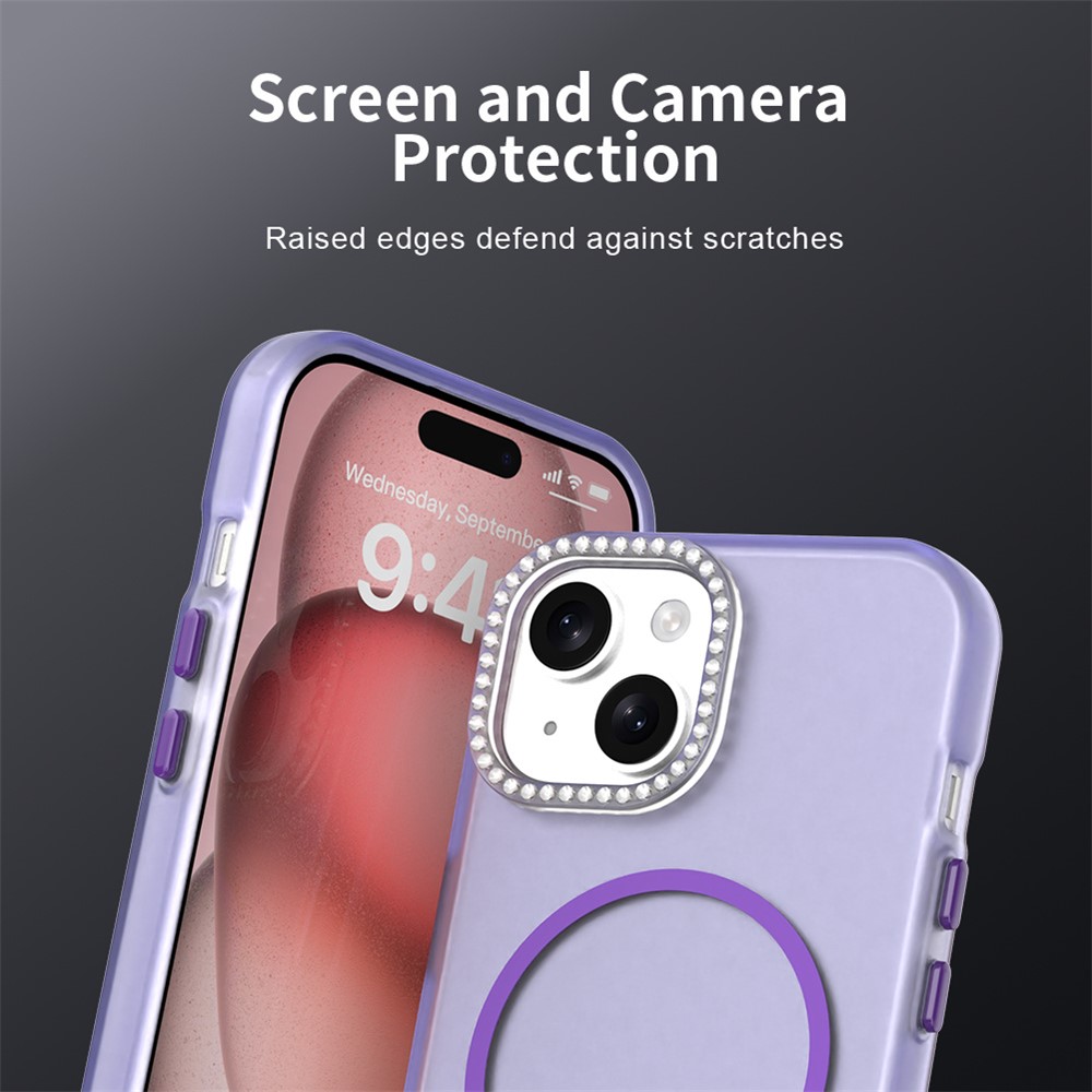 - Elegant Rhinestone Lens Frame Decorated with sparkling rhinestones around the camera lens frame for a touch of glamour and added lens protection