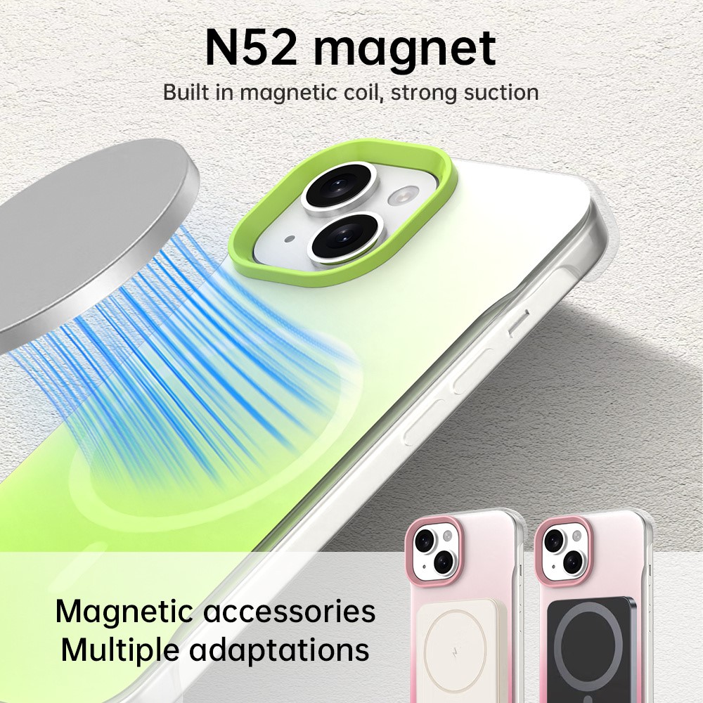 For iPhone 15 Plus / 14 Plus Magnetic Case Gradient Design Borderless IMD TPU + PC + PET Phone Cover - Green $13.53