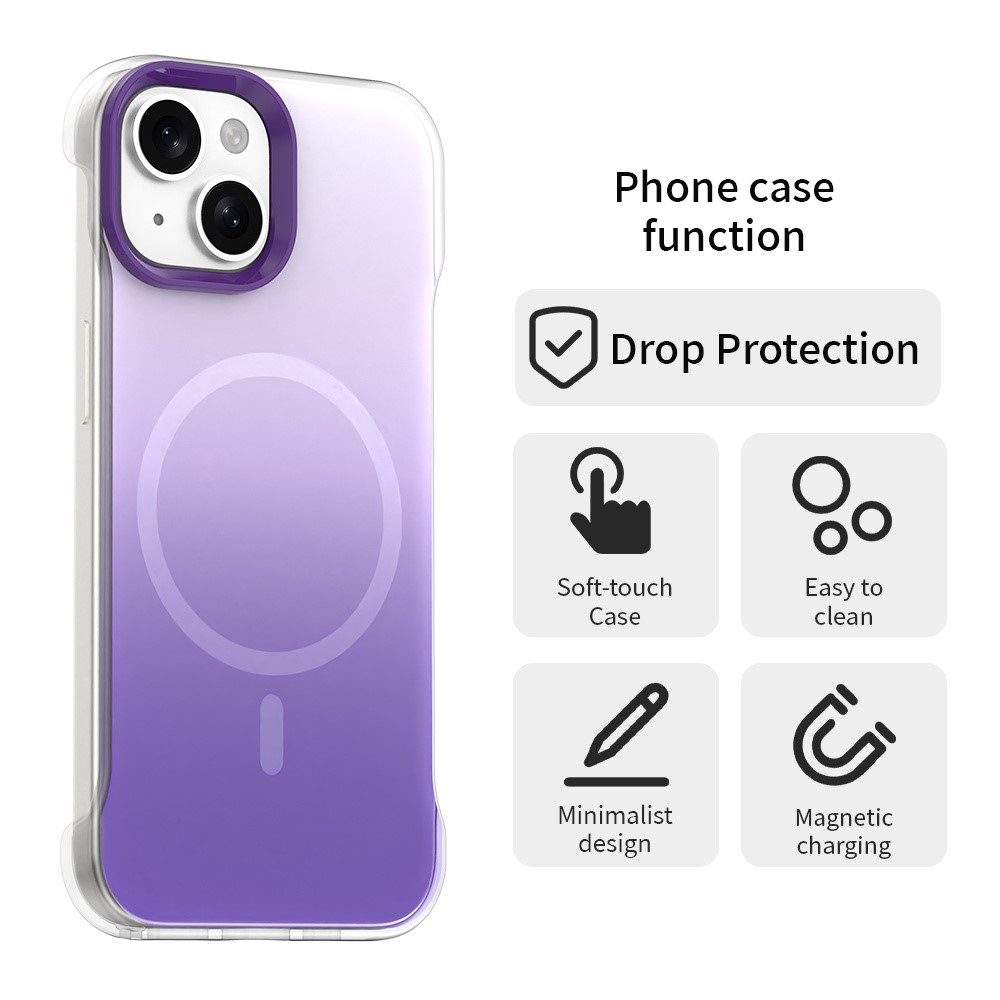 For iPhone 15 Plus / 14 Plus Magnetic Case Gradient Design Borderless IMD TPU + PC + PET Phone Cover - Purple $13.53