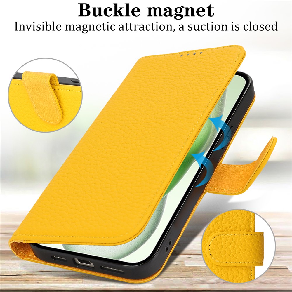 - Premium Material Combination Crafted with a litchi textured genuine cow leather exterior for a premium look and feel, paired with a flexible TPU inner shell that offers excellent shock absorption and long-lasting protection