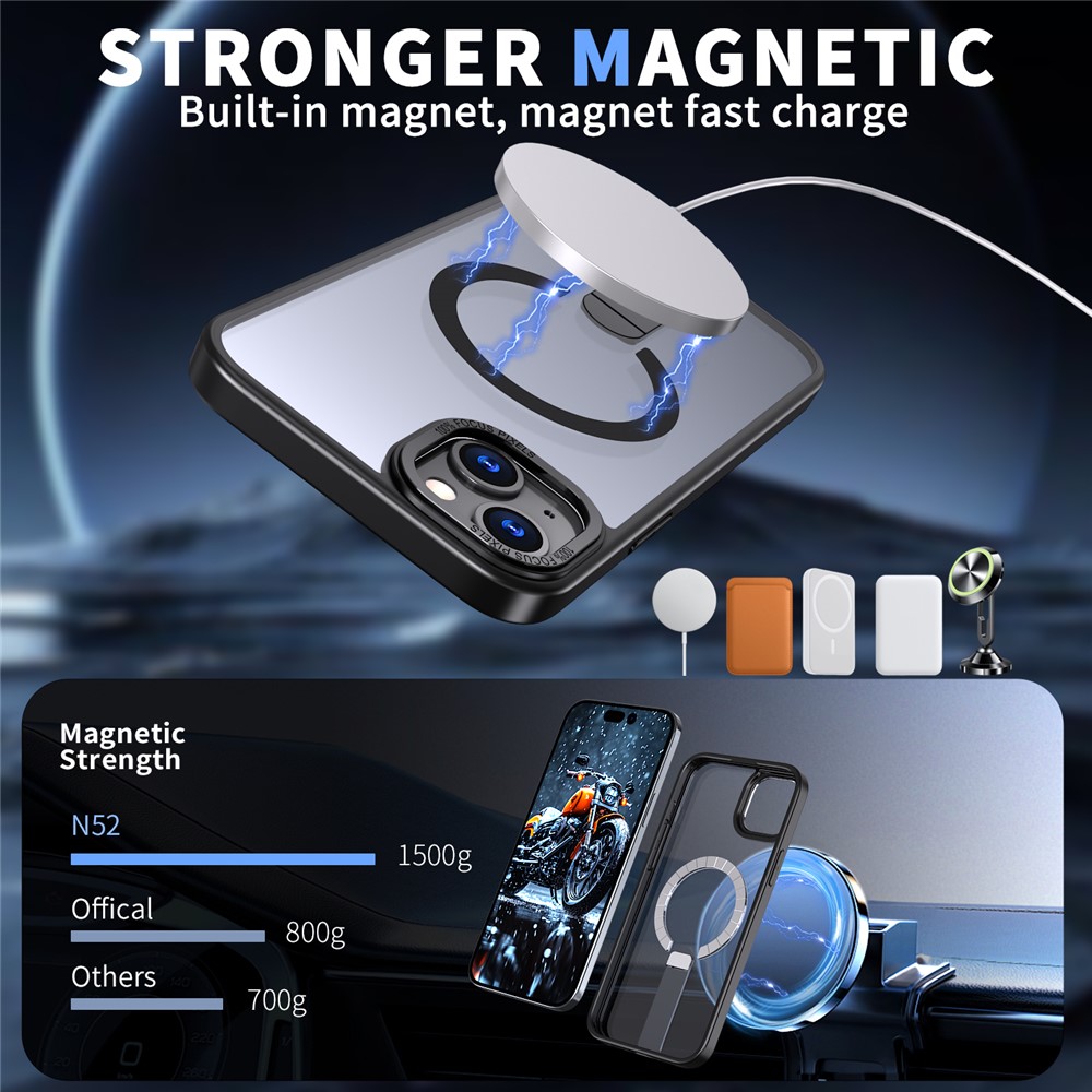 - Strong Magnetic Force Built with an N52-grade magnetic ring delivering up to 1500g of magnetic strength, this case is compatible with MagSafe chargers and magnetic car mounts