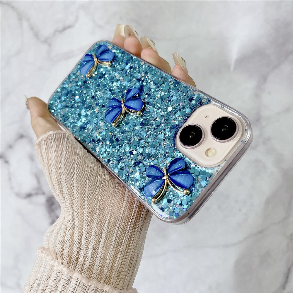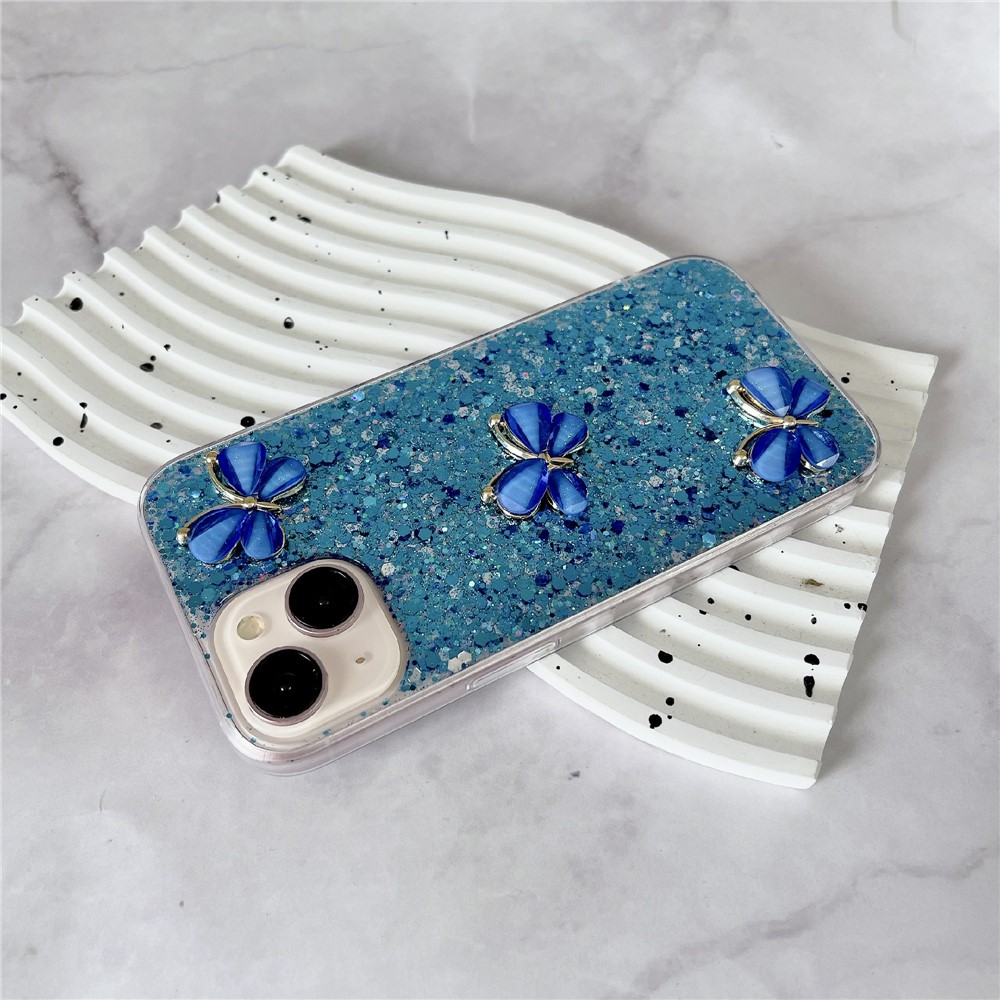 - Epoxy craft and 3D butterflies set against a sparkling glitter backdrop add a touch of elegance and whimsy to your device