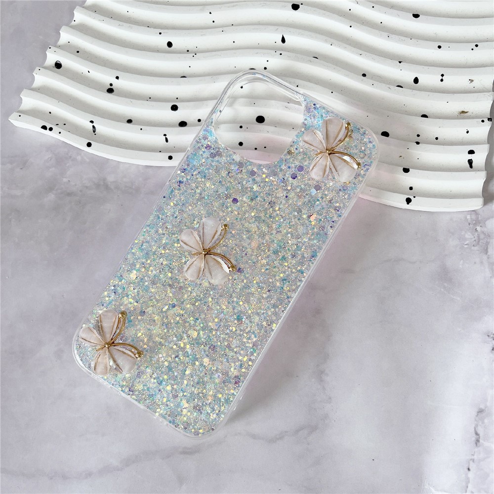 - Epoxy craft and 3D butterflies set against a sparkling glitter backdrop add a touch of elegance and whimsy to your device