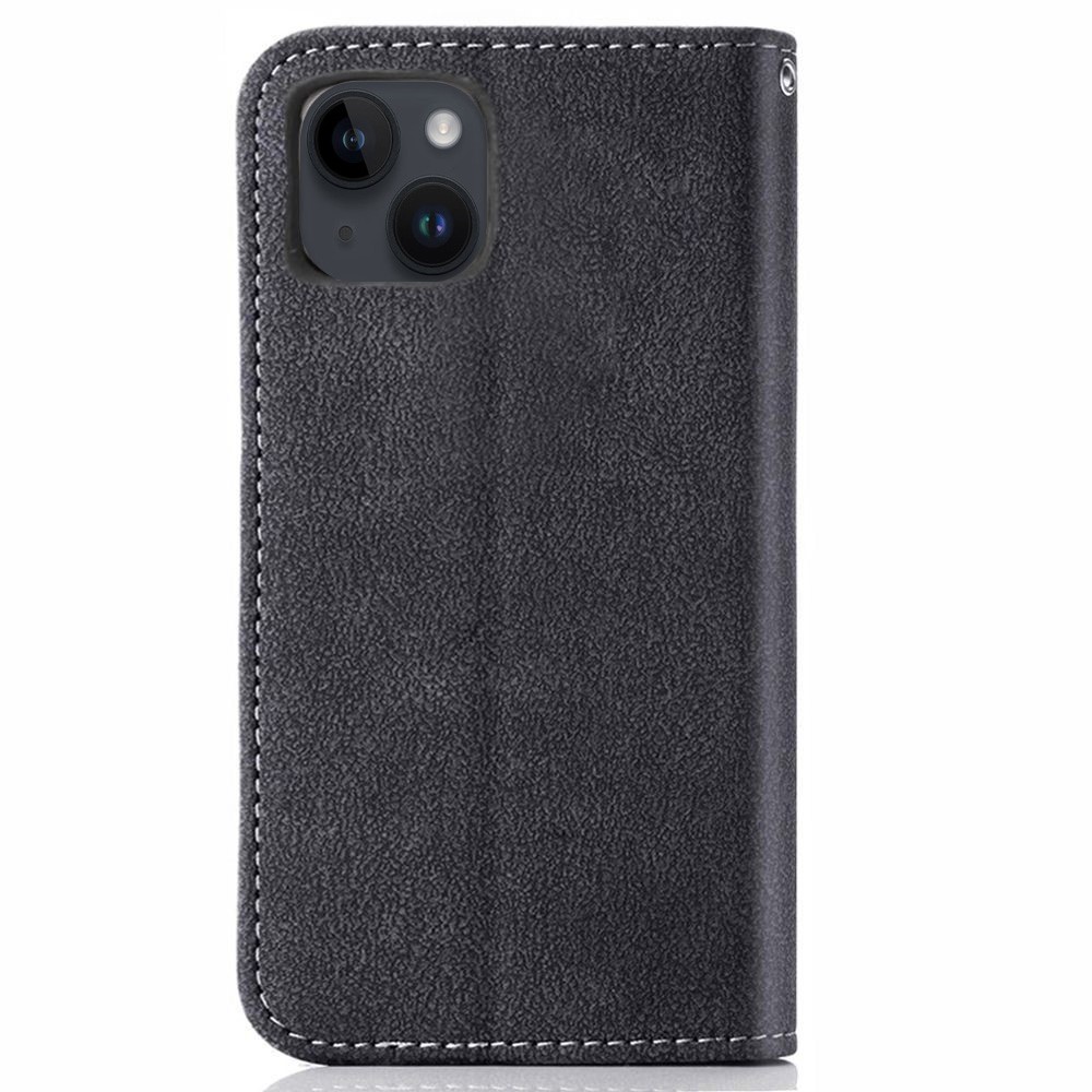 For iPhone 15 Plus Case Retro PU Leather Wallet Phone Cover with Rotating Card Slots Holder - Black